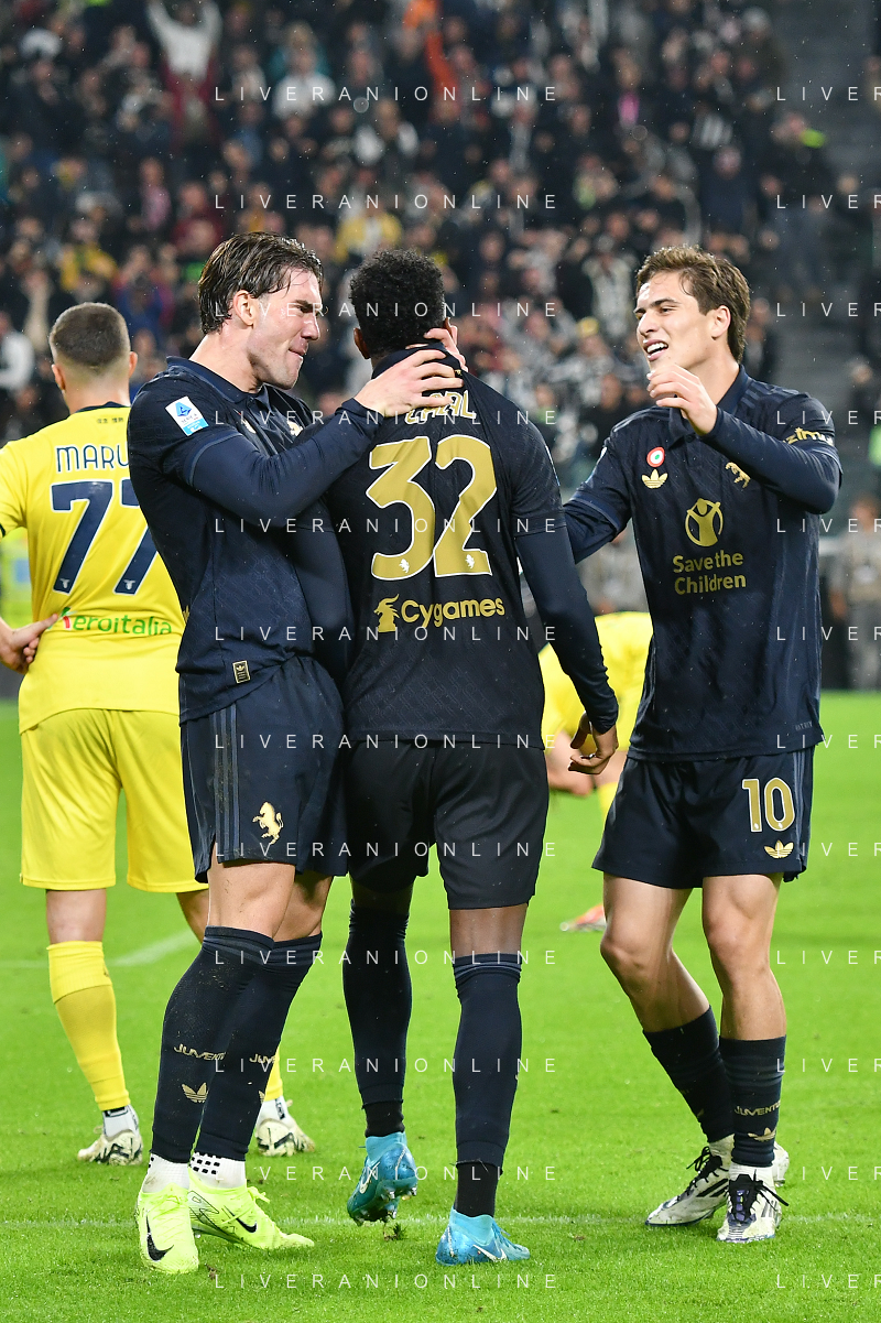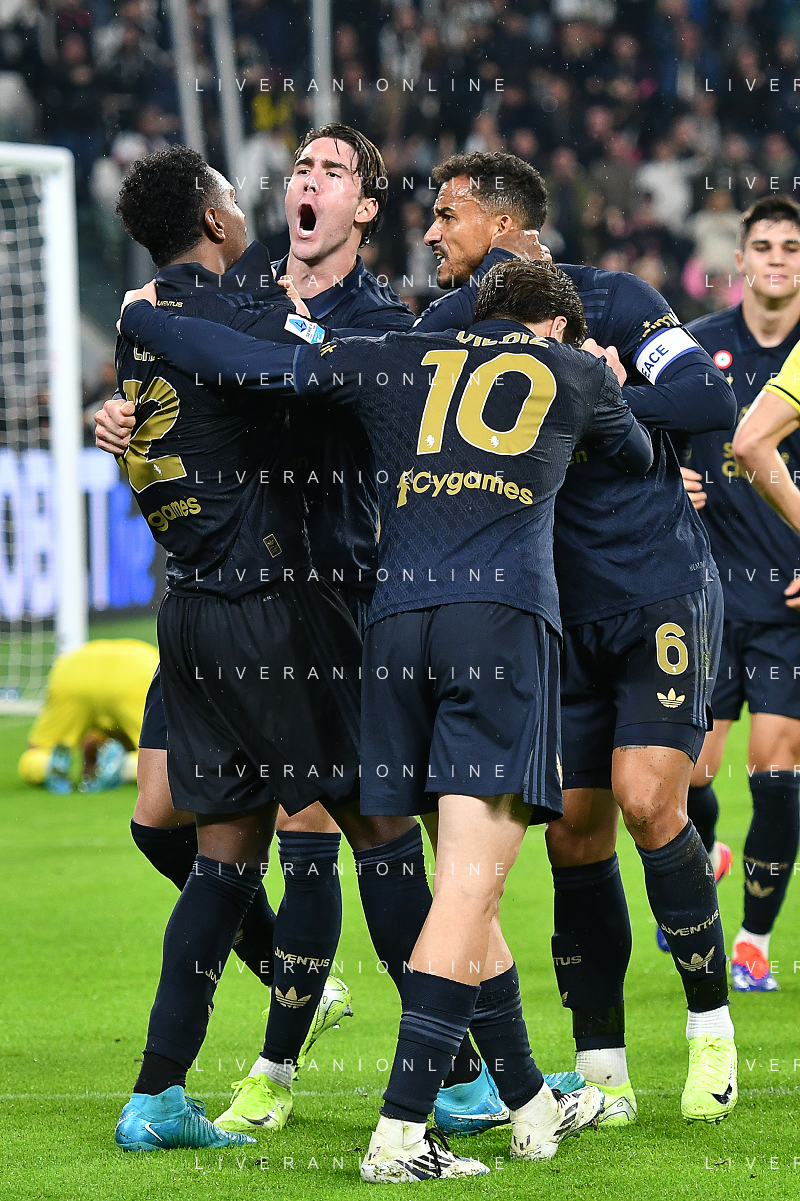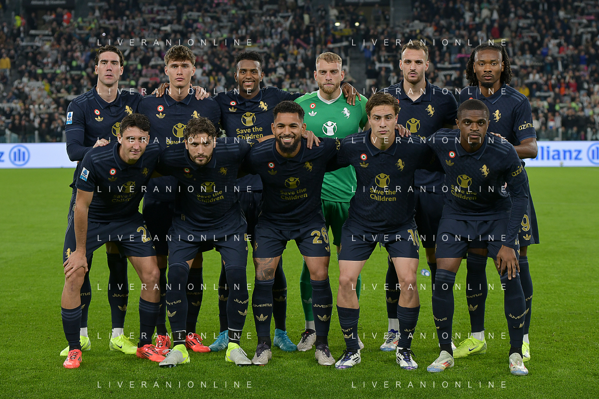 Torino 19.10.2024 Allianz Stadium @Manuela Viganti /Ag. Aldo Liverani sas Juventus vs Lazio Campionato Calcio Serie A Enilive 2024/2025 8a giornata Nella foto: la formazione della juventus da sx verso dx: dusan vlahovic, nicolò savona, juan cabal, michele di gregorio, federico gatti, khephren thuram, andrea cambiaso, manuel locatelli, douglas luiz, kenan yildiz, pierre kalulu