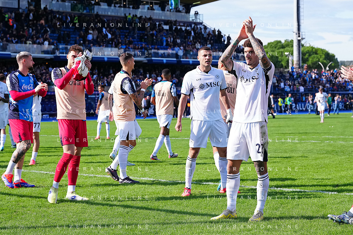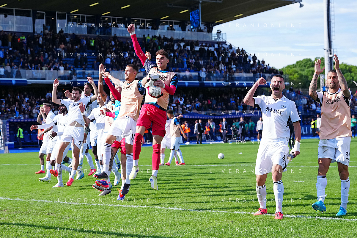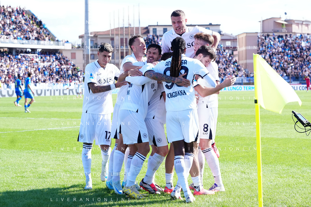 Empoli - Napoli Campionato calcio Serie A 20.10.2024 nella foto: Esultanza fine gara Antonio Conte con i suoi giocatori Foto Mosca - AGENZIA ALDO LIVERANI SAS