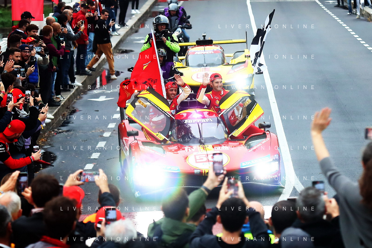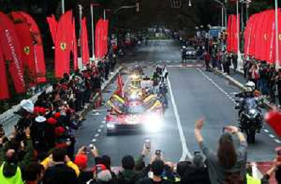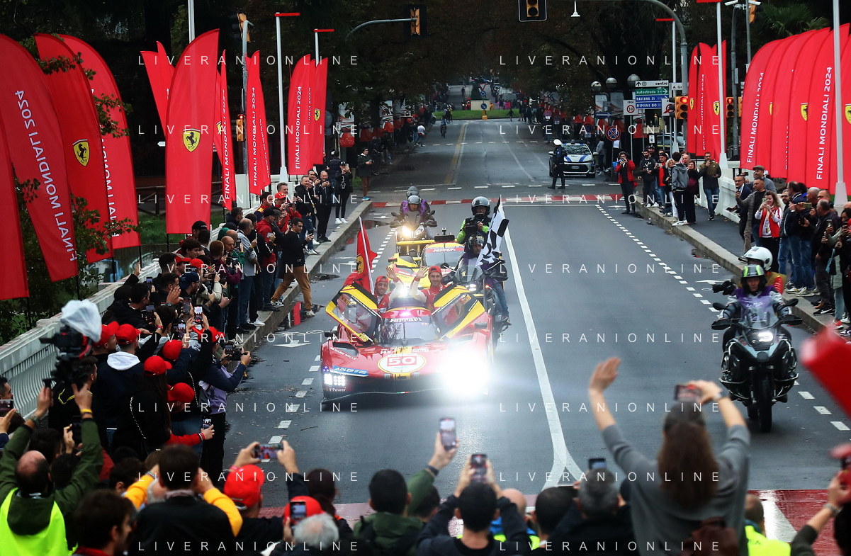IMOLA 20 10 2024 AUTODROMO ENZO E DINO FERRARI FINALI MONDIALI 2024 FERRARI NELLA FOTO PARATA DELLE AUTO FERRARI DELLA 24 ORE LE MANES SUL PONTE DI VIALE DANTE FOTO GIANNI SANNA-AG ALDO LIVERANI SAS