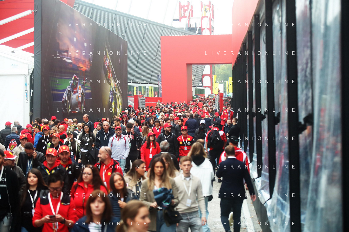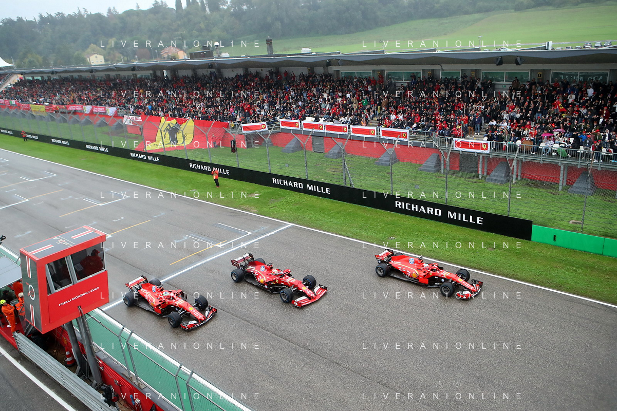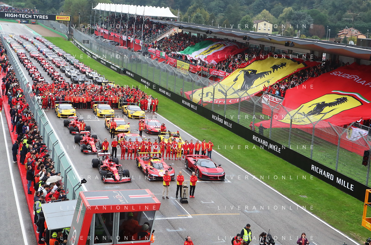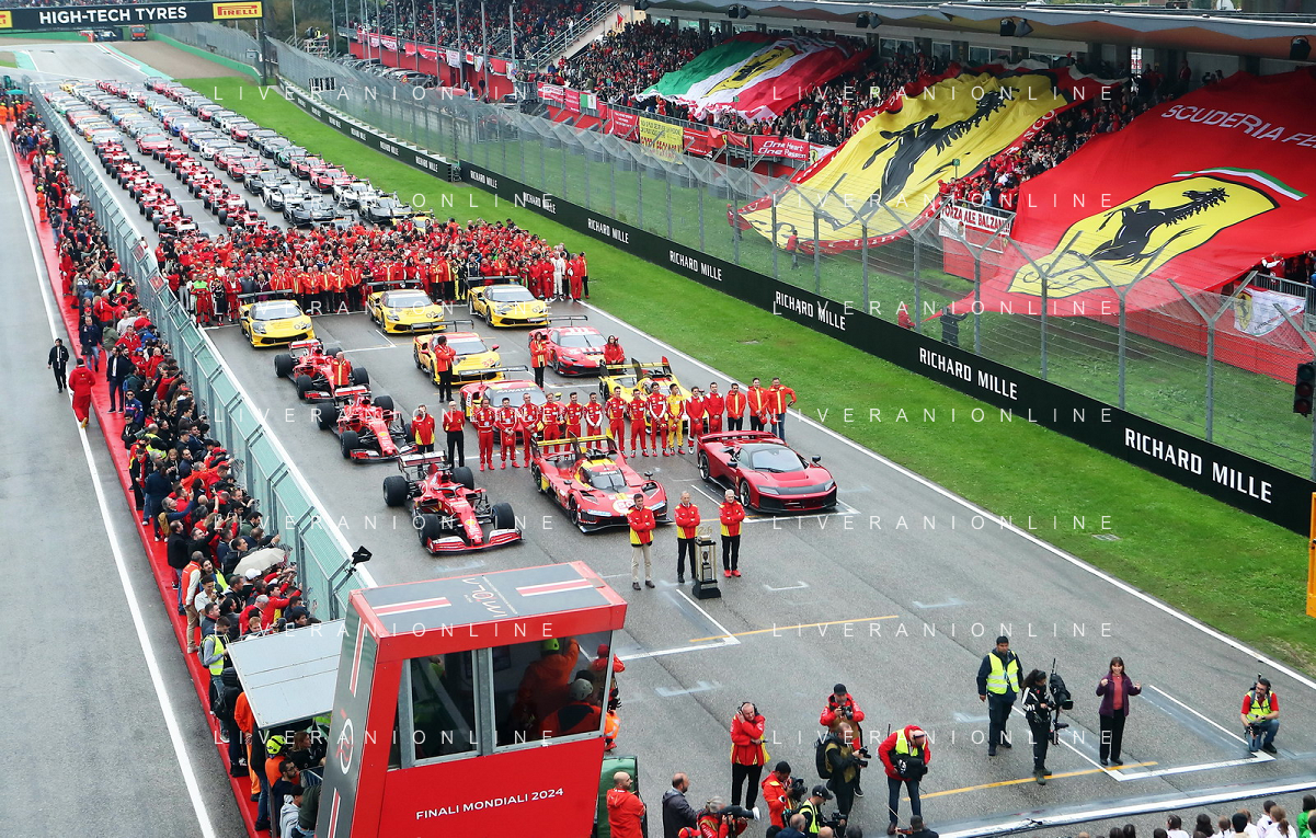 IMOLA 20 10 2024 AUTODROMO ENZO E DINO FERRARI FINALI MONDIALI 2024 FERRARI NELLA FOTO FOTO UFFICIALE DELLA FERRARI CON IL PUBBLICO FOTO GIANNI SANNA-AG ALDO LIVERANI SAS