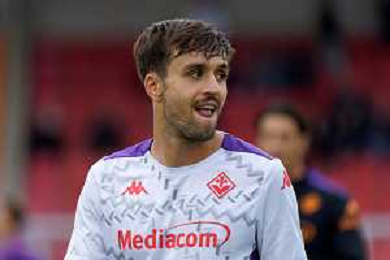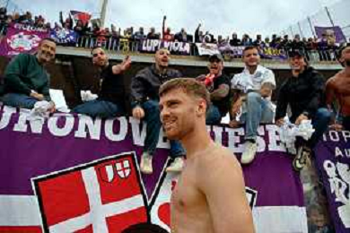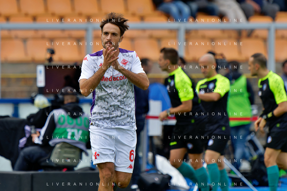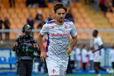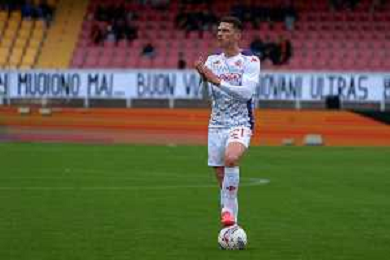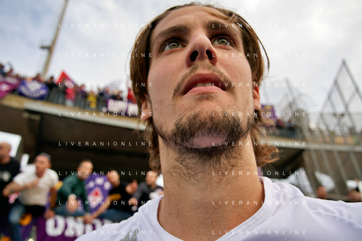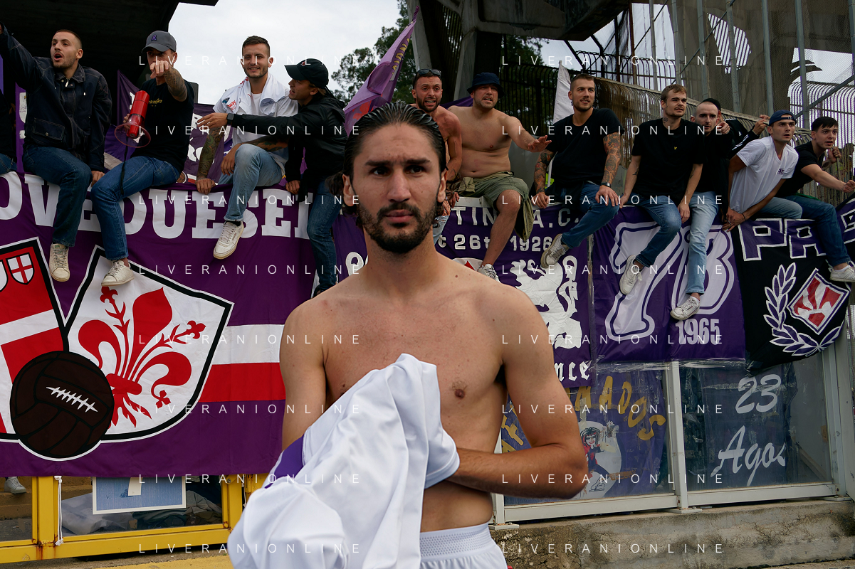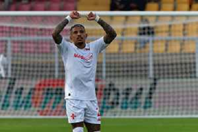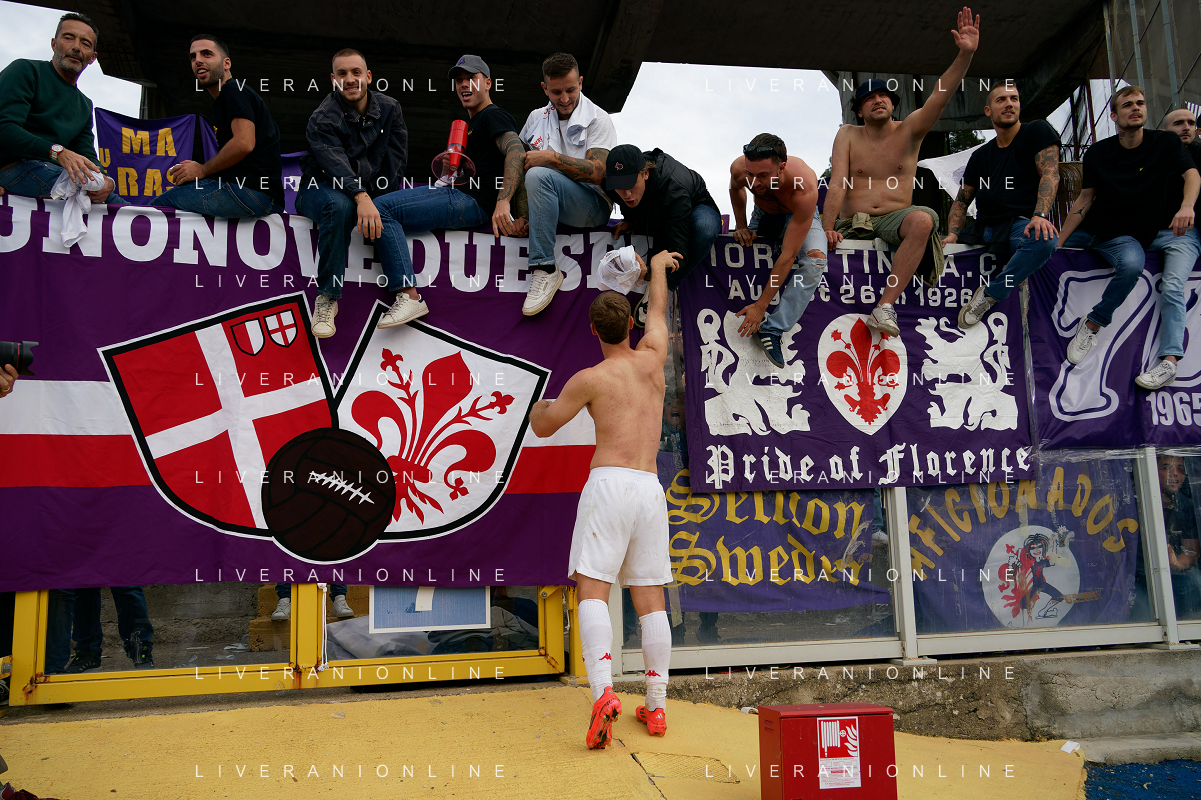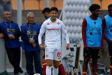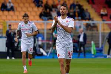TVEM October 20, 2024 Lecce, Italy - US Lecce vs ACF Fiorentina - Italian soccer serie A 2024/25 - Via Del Mare Stadium. In the pic: Andrea Colpani of Fiorentina greet the fans foto emmanuele mastrodonato-ag aldo liverani sas