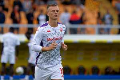 TVEM October 20, 2024 Lecce, Italy - US Lecce vs ACF Fiorentina - Italian soccer serie A 2024/25 - Via Del Mare Stadium. In the pic: Tommaso Martinelli of Fiorentina foto emmanuele mastrodonato-ag aldo liverani sas