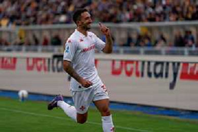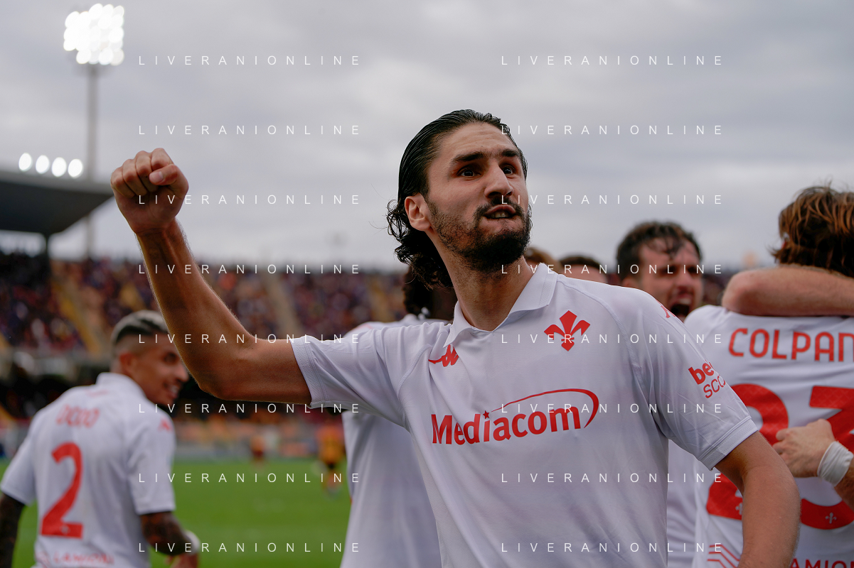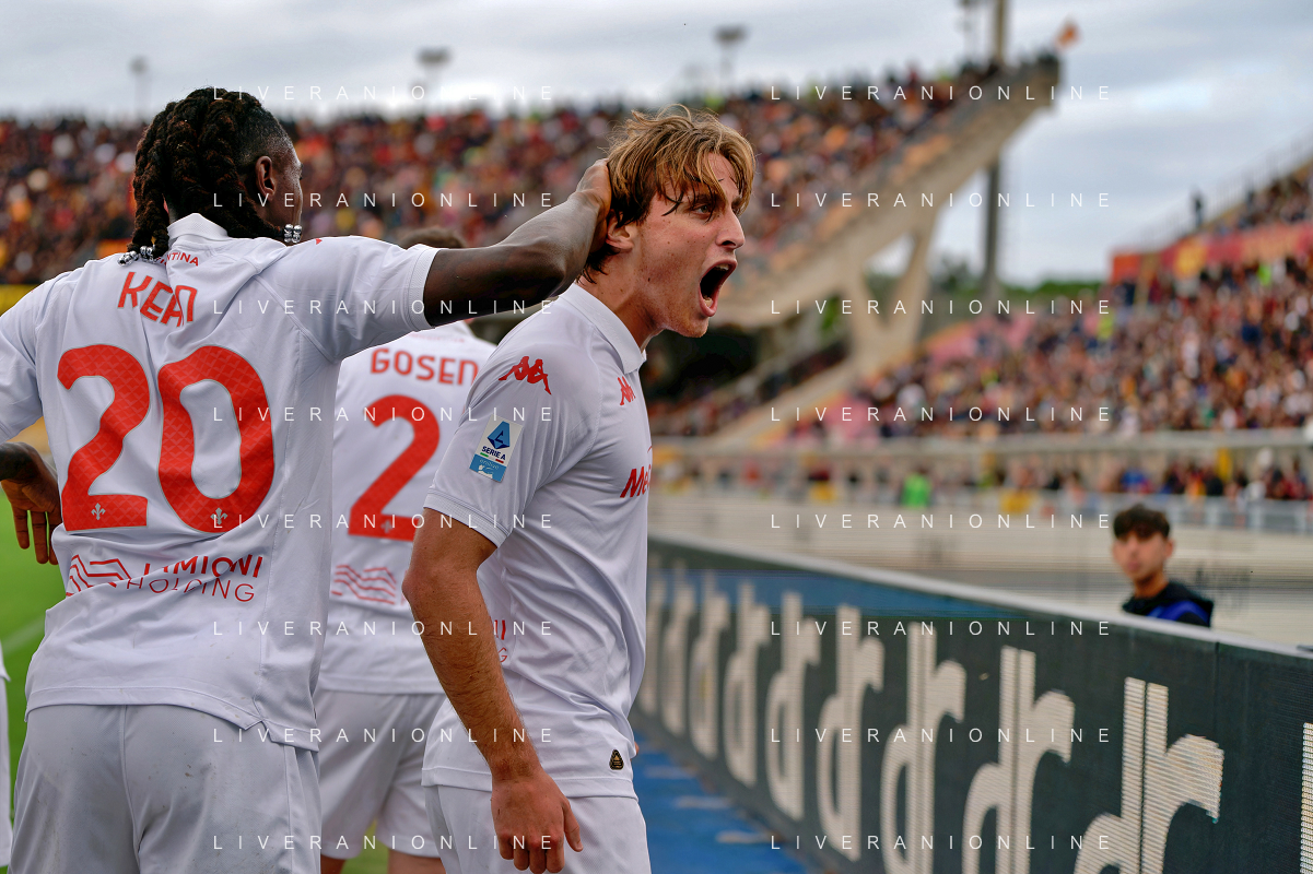 TVEM October 20, 2024 Lecce, Italy - US Lecce vs ACF Fiorentina - Italian soccer serie A 2024/25 - Via Del Mare Stadium. In the pic: Andrea Colpani of Fiorentina celebrates after scoring a goal foto emmanuele mastrodonato-ag aldo liverani sas