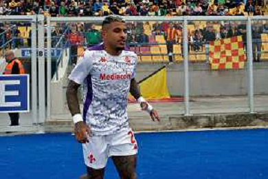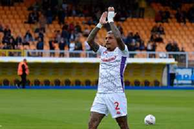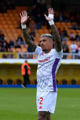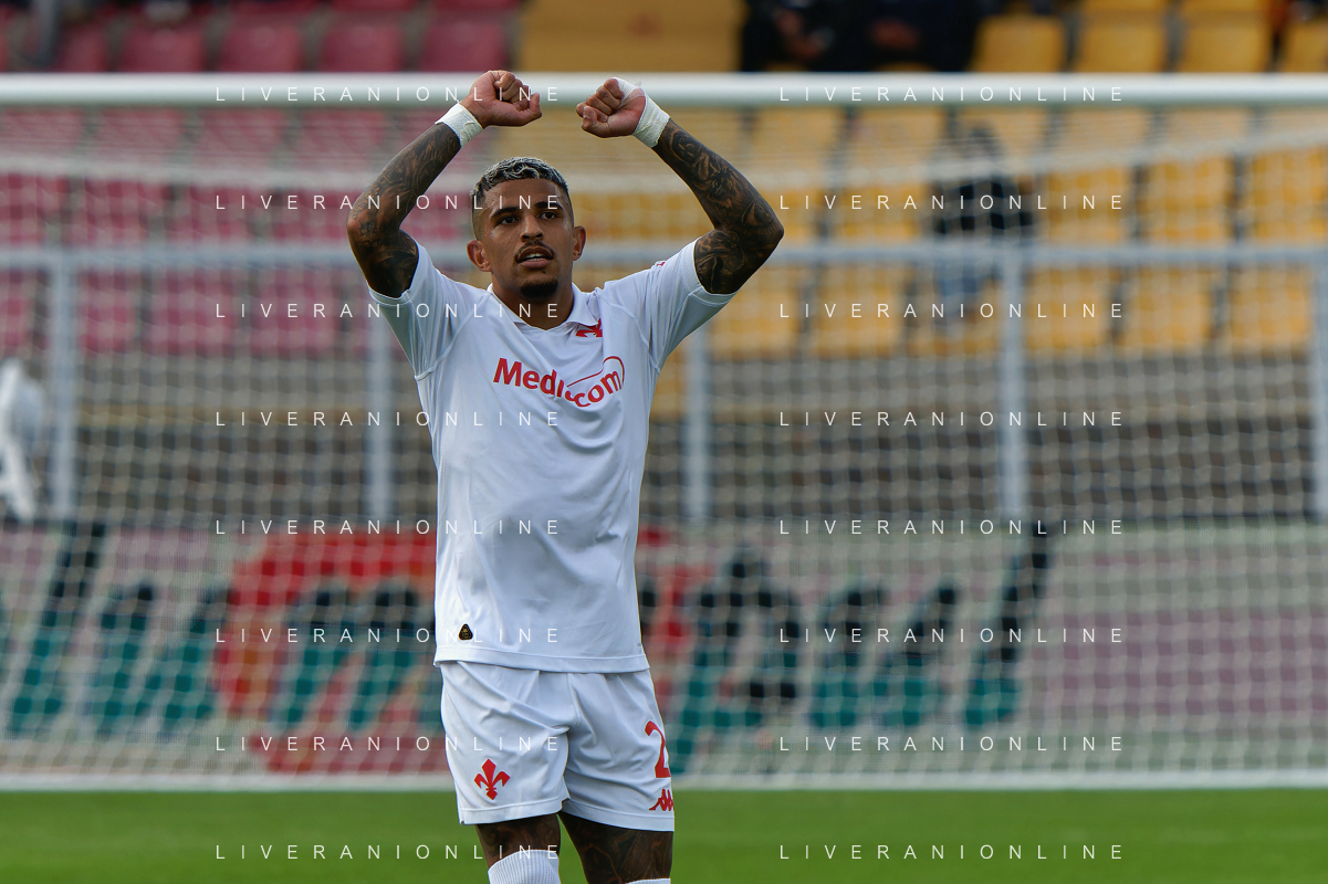 TVEM October 20, 2024 Lecce, Italy - US Lecce vs ACF Fiorentina - Italian soccer serie A 2024/25 - Via Del Mare Stadium. In the pic: Dodo of Fiorentina celebrates foto emmanuele mastrodonato-ag aldo liverani sas