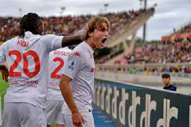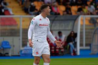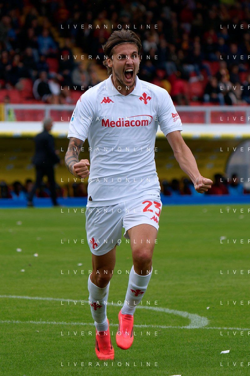 TVEM October 20, 2024 Lecce, Italy - US Lecce vs ACF Fiorentina - Italian soccer serie A 2024/25 - Via Del Mare Stadium. In the pic: Edoardo Bove of Fiorentina celebrates foto emmanuele mastrodonato-ag aldo liverani sas