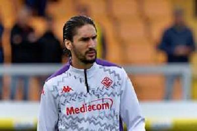 TVEM October 20, 2024 Lecce, Italy - US Lecce vs ACF Fiorentina - Italian soccer serie A 2024/25 - Via Del Mare Stadium. In the pic: Lucas Beltran of Fiorentina greet the fans foto emmanuele mastrodonato-ag aldo liverani sas