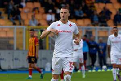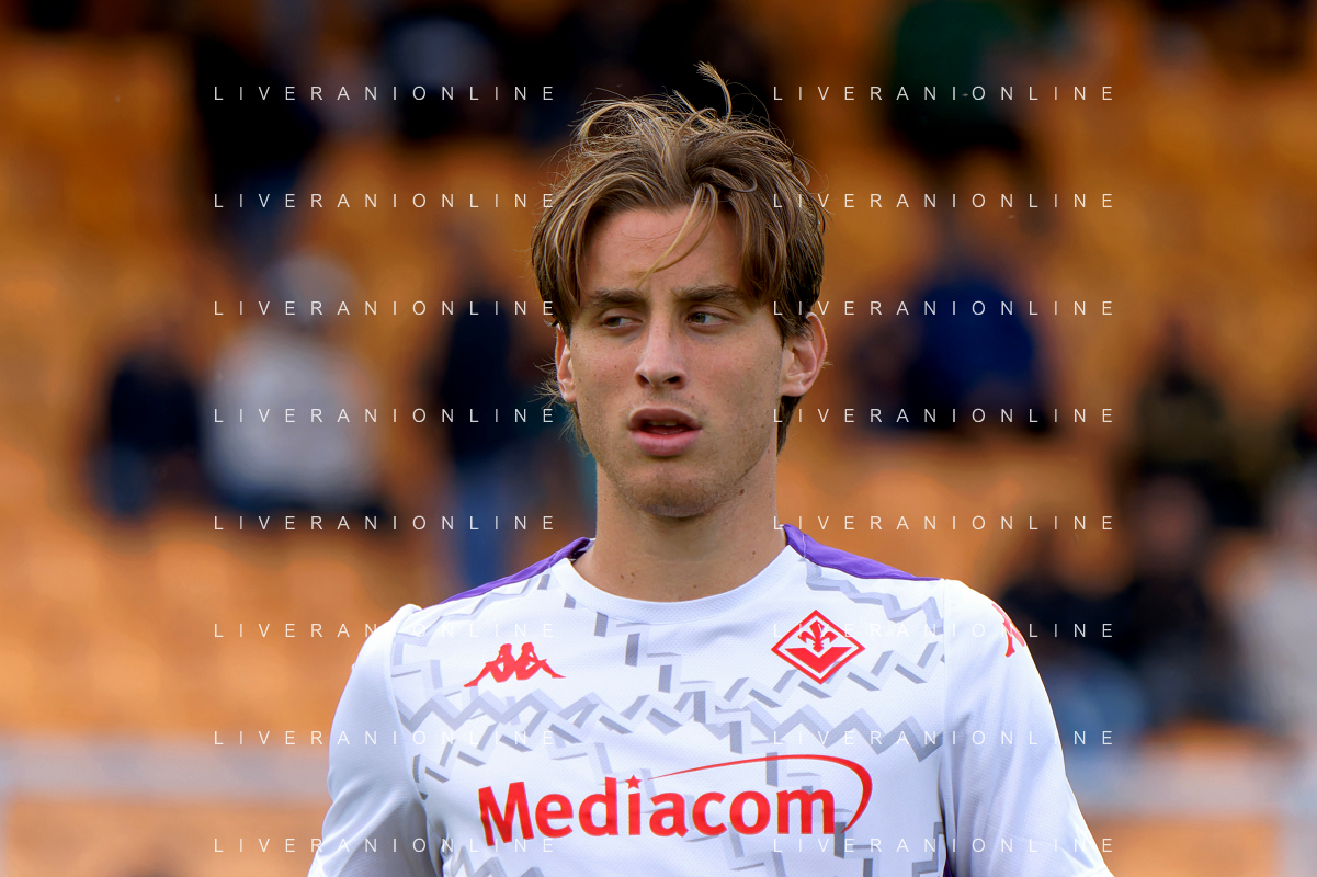 TVEM October 20, 2024 Lecce, Italy - US Lecce vs ACF Fiorentina - Italian soccer serie A 2024/25 - Via Del Mare Stadium. In the pic: Pietro Comuzzo of Fiorentina foto emmanuele mastrodonato-ag aldo liverani sas