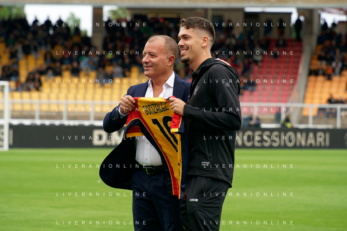 TVEM October 20, 2024 Lecce, Italy - US Lecce vs ACF Fiorentina - Italian soccer serie A 2024/25 - Via Del Mare Stadium. In the pic: the president of US Lecce Saverio Sticchi Damiani and Joan Gonzalez foto emmanuele mastrodonato-ag aldo liverani sas
