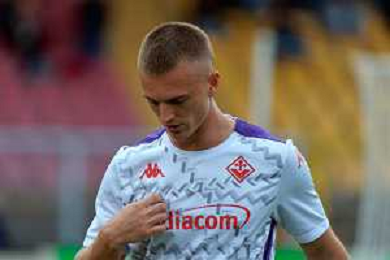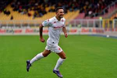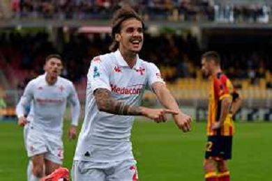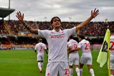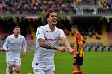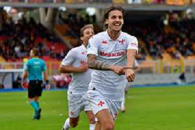 TVEM October 20, 2024 Lecce, Italy - US Lecce vs ACF Fiorentina - Italian soccer serie A 2024/25 - Via Del Mare Stadium. In the pic: Pietro Terracciano of Fiorentina foto emmanuele mastrodonato-ag aldo liverani sas