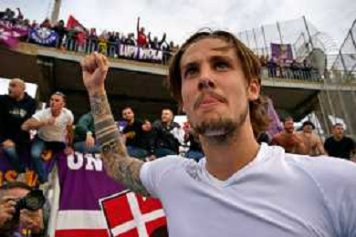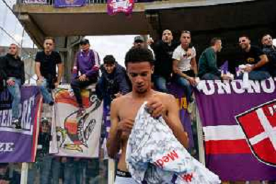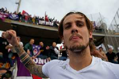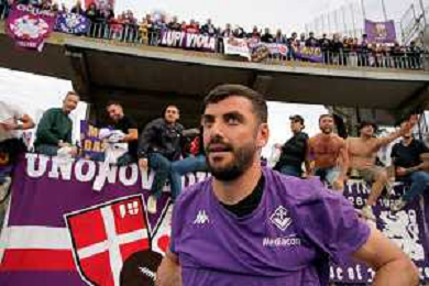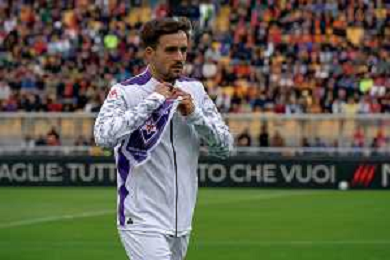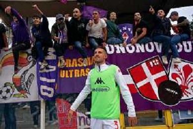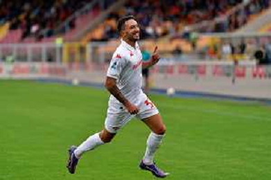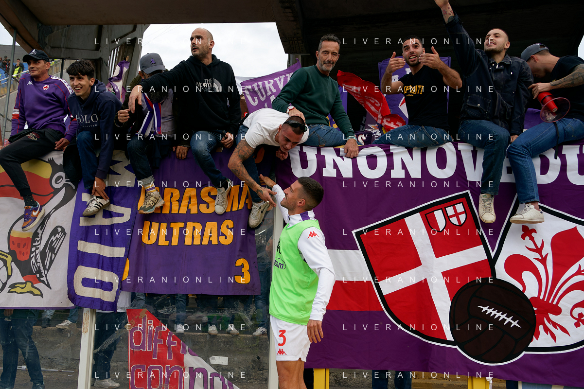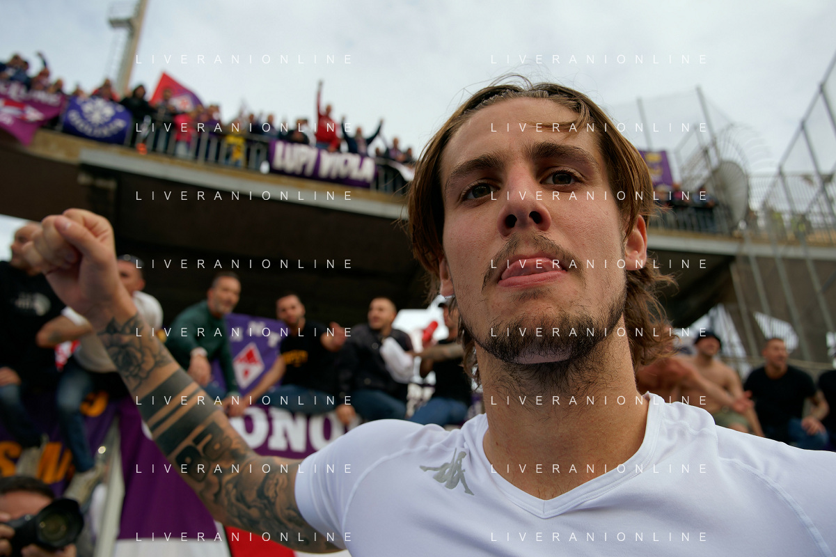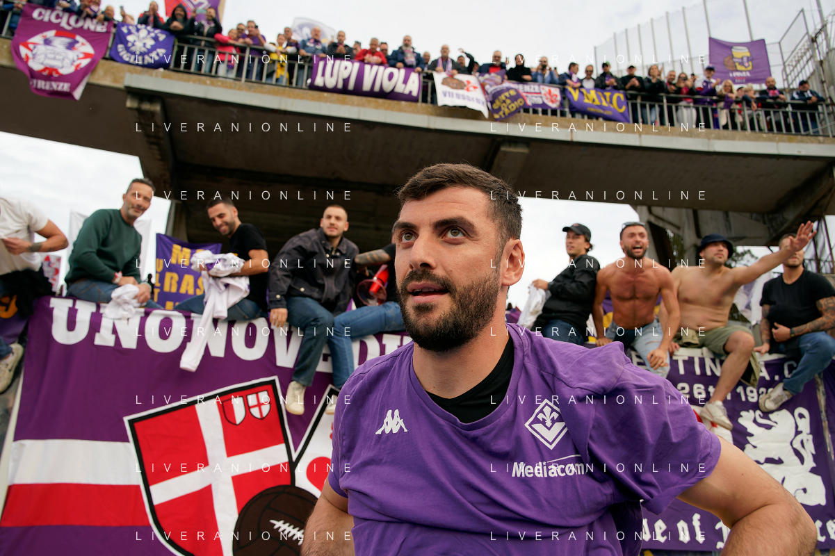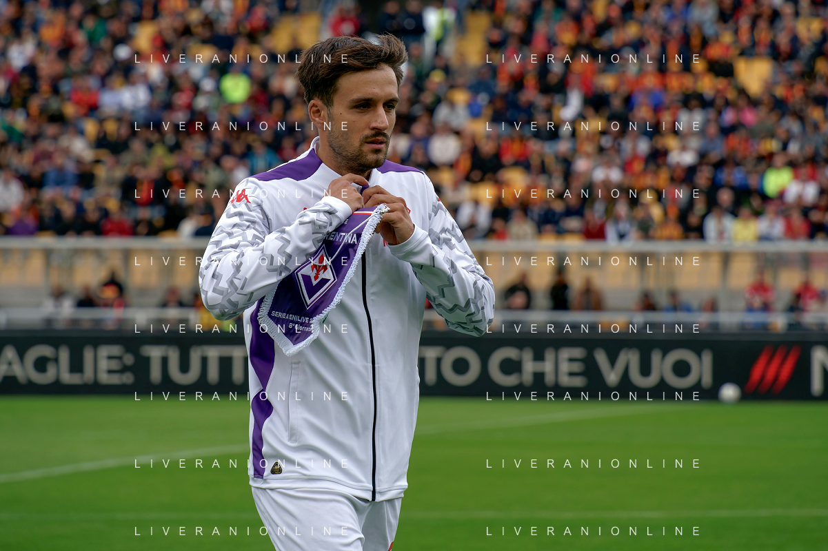 TVEM October 20, 2024 Lecce, Italy - US Lecce vs ACF Fiorentina - Italian soccer serie A 2024/25 - Via Del Mare Stadium. In the pic: Cristiano Biraghi of Fiorentina greet the fans foto emmanuele mastrodonato-ag aldo liverani sas