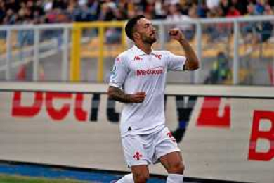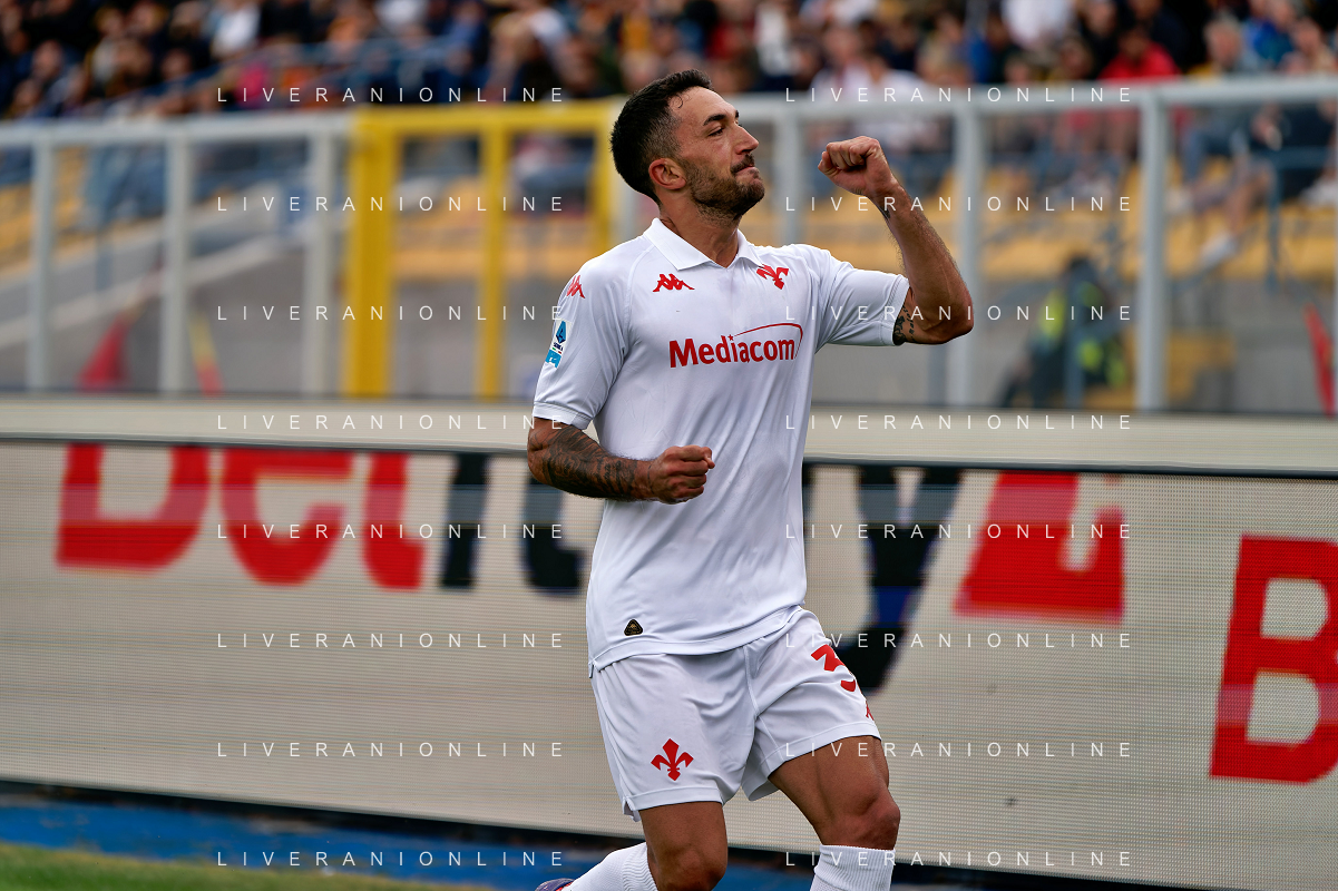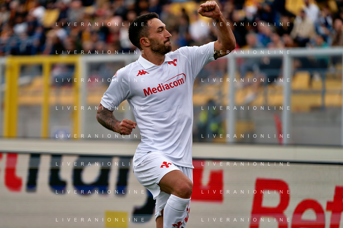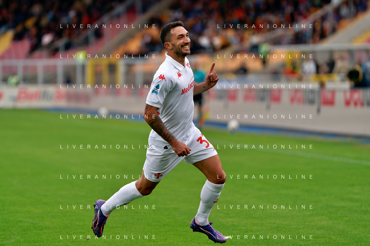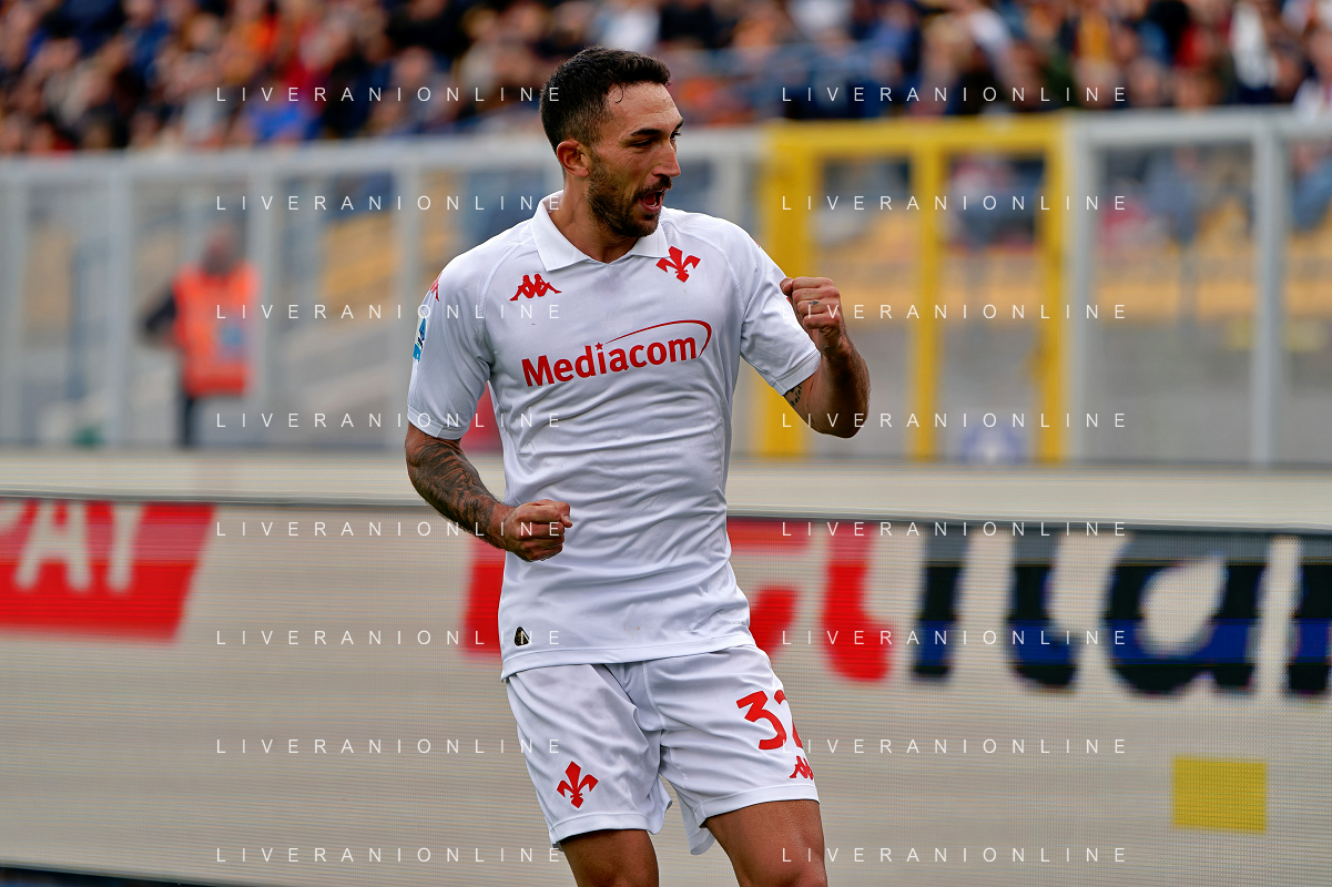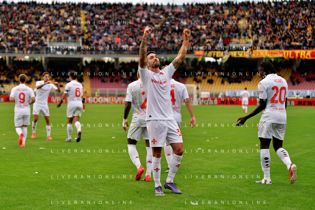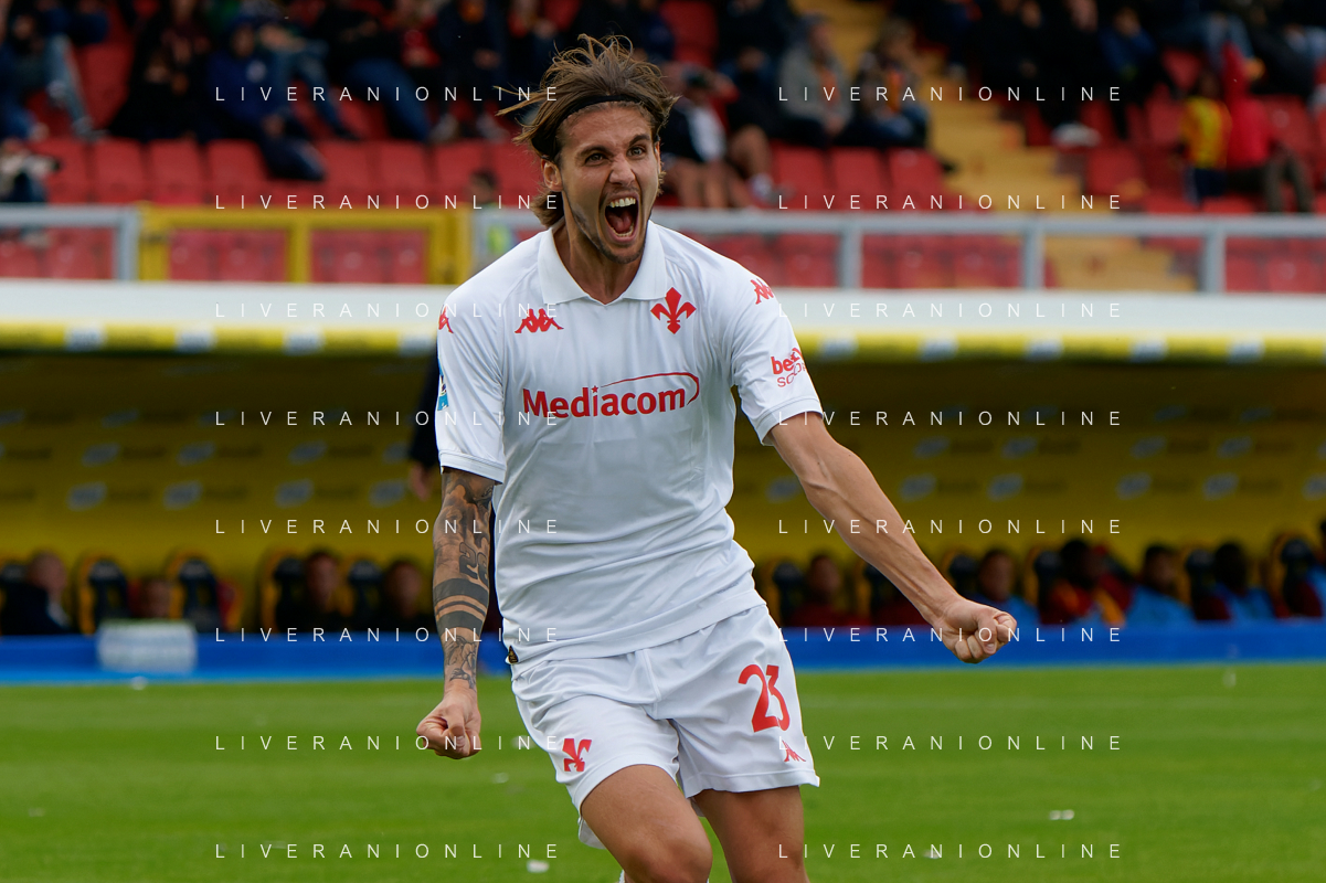TVEM October 20, 2024 Lecce, Italy - US Lecce vs ACF Fiorentina - Italian soccer serie A 2024/25 - Via Del Mare Stadium. In the pic: Fabiano Parisi of Fiorentina celebrates after scoring a goal foto emmanuele mastrodonato-ag aldo liverani sas