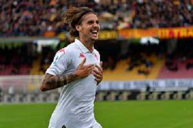 TVEM October 20, 2024 Lecce, Italy - US Lecce vs ACF Fiorentina - Italian soccer serie A 2024/25 - Via Del Mare Stadium. In the pic: Lucas Beltran of Fiorentina celebrates after scoring a goal foto emmanuele mastrodonato-ag aldo liverani sas
