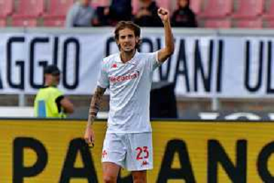 TVEM October 20, 2024 Lecce, Italy - US Lecce vs ACF Fiorentina - Italian soccer serie A 2024/25 - Via Del Mare Stadium. In the pic: Cristiano Biraghi of Fiorentina applauds fans foto emmanuele mastrodonato-ag aldo liverani sas