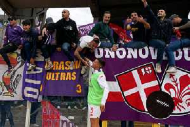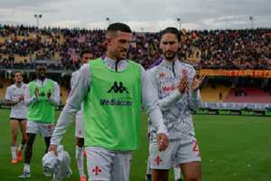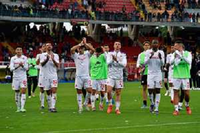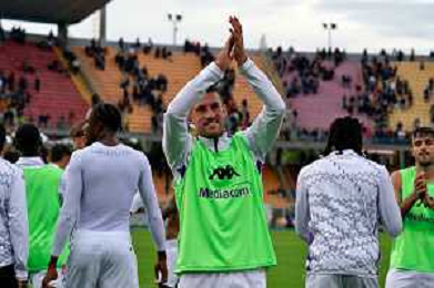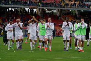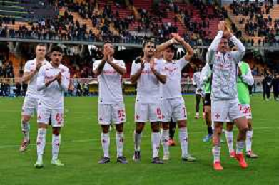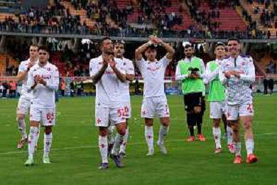 TVEM October 20, 2024 Lecce, Italy - US Lecce vs ACF Fiorentina - Italian soccer serie A 2024/25 - Via Del Mare Stadium. In the pic: TVEM October 18, 2024 Bari, Italy - SSC Bari vs US Catanzaro - Italian soccer serie B 2024/25 - San Nicola Stadium. In the pic: the Fiorentina players applauds fans foto emmanuele mastrodonato-ag aldo liverani sas