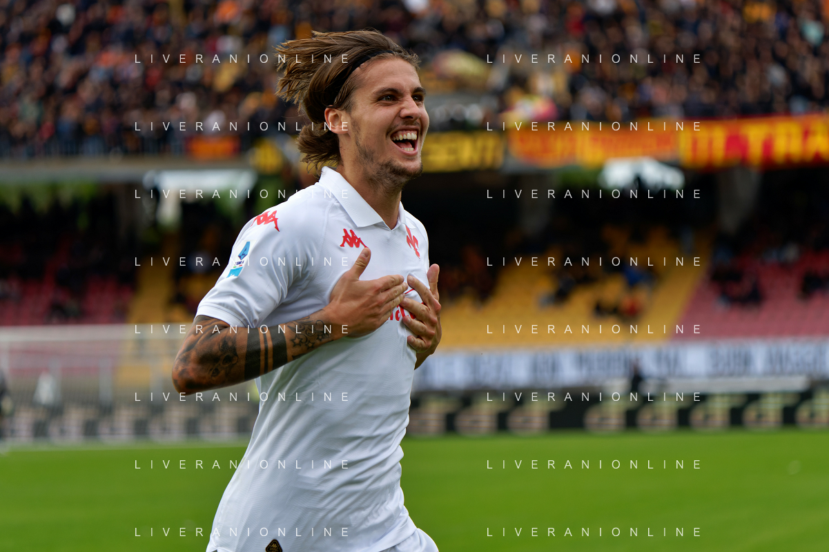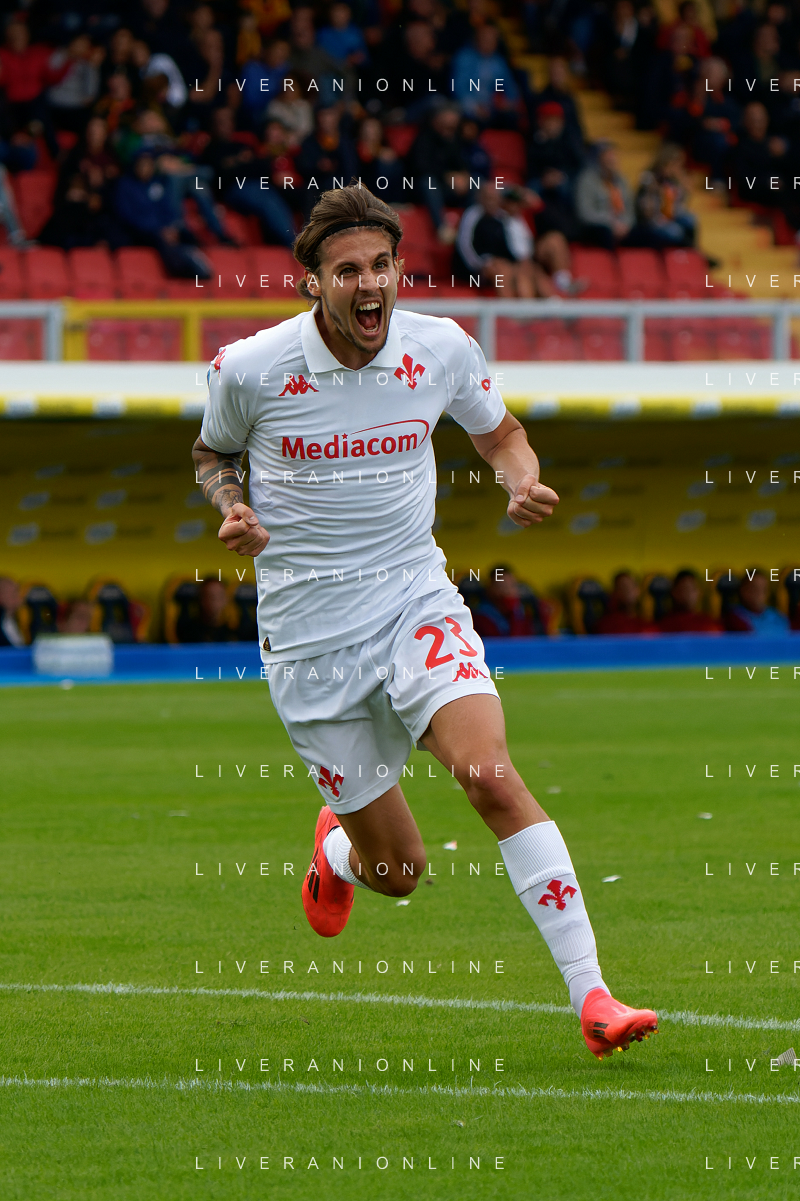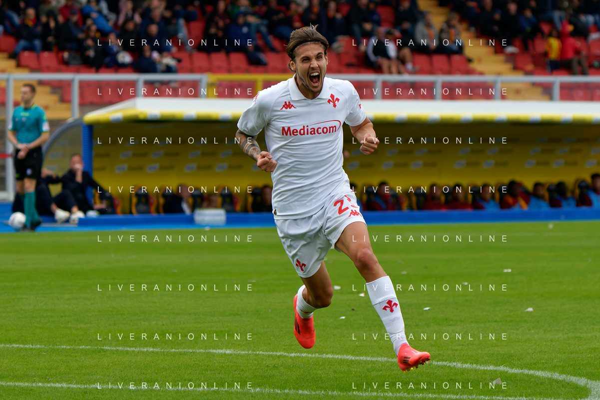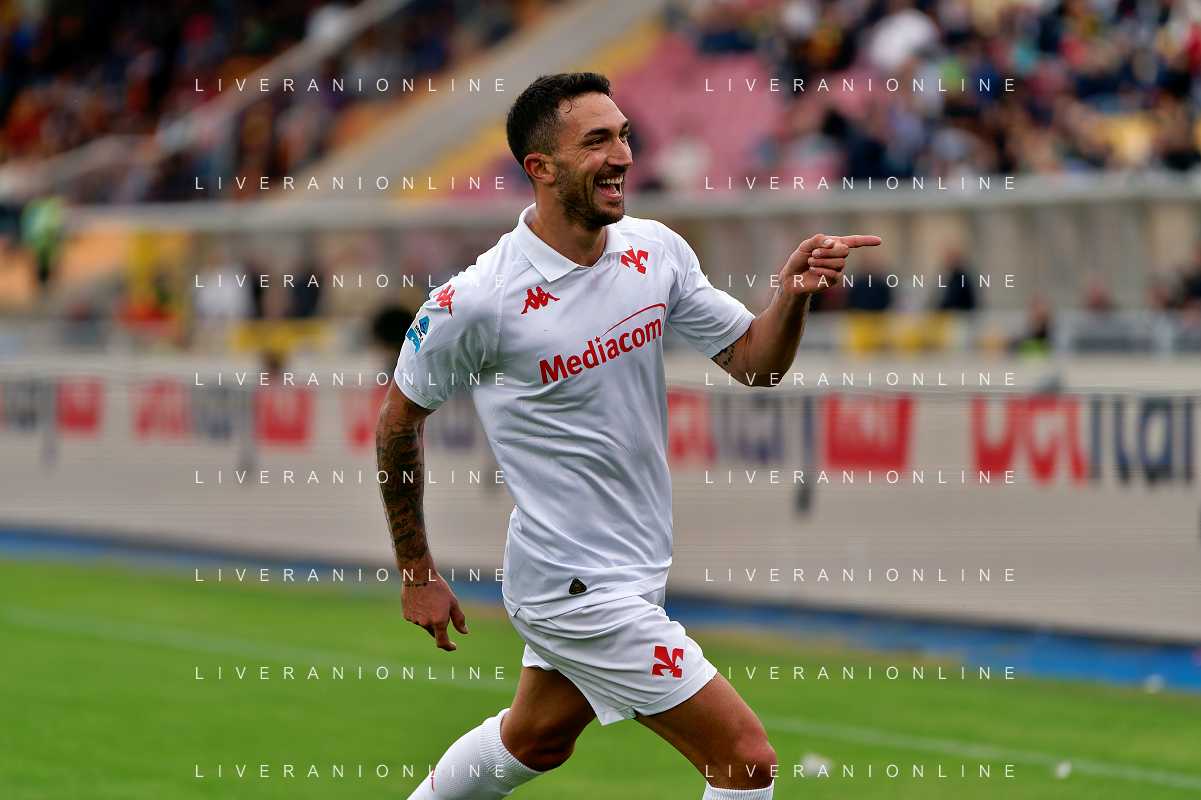 TVEM October 20, 2024 Lecce, Italy - US Lecce vs ACF Fiorentina - Italian soccer serie A 2024/25 - Via Del Mare Stadium. In the pic: Andrea Colpani of Fiorentina celebrates after scoring a goal foto emmanuele mastrodonato-ag aldo liverani sas
