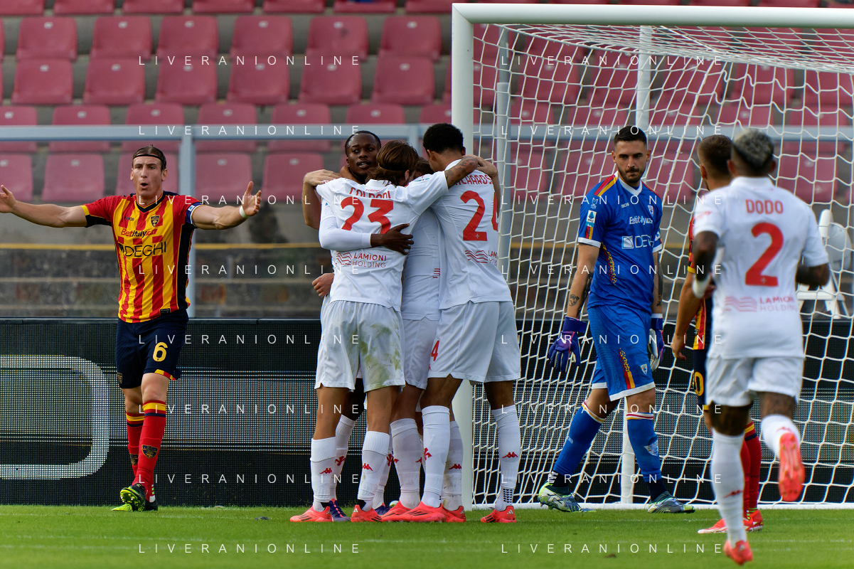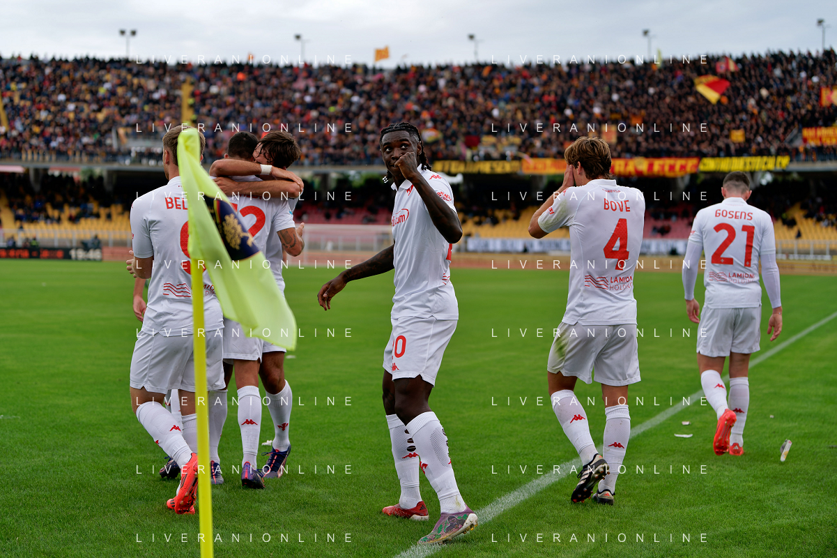TVEM October 20, 2024 Lecce, Italy - US Lecce vs ACF Fiorentina - Italian soccer serie A 2024/25 - Via Del Mare Stadium. In the pic: celebrates after scoring a goal with teammates foto emmanuele mastrodonato-ag aldo liverani sas