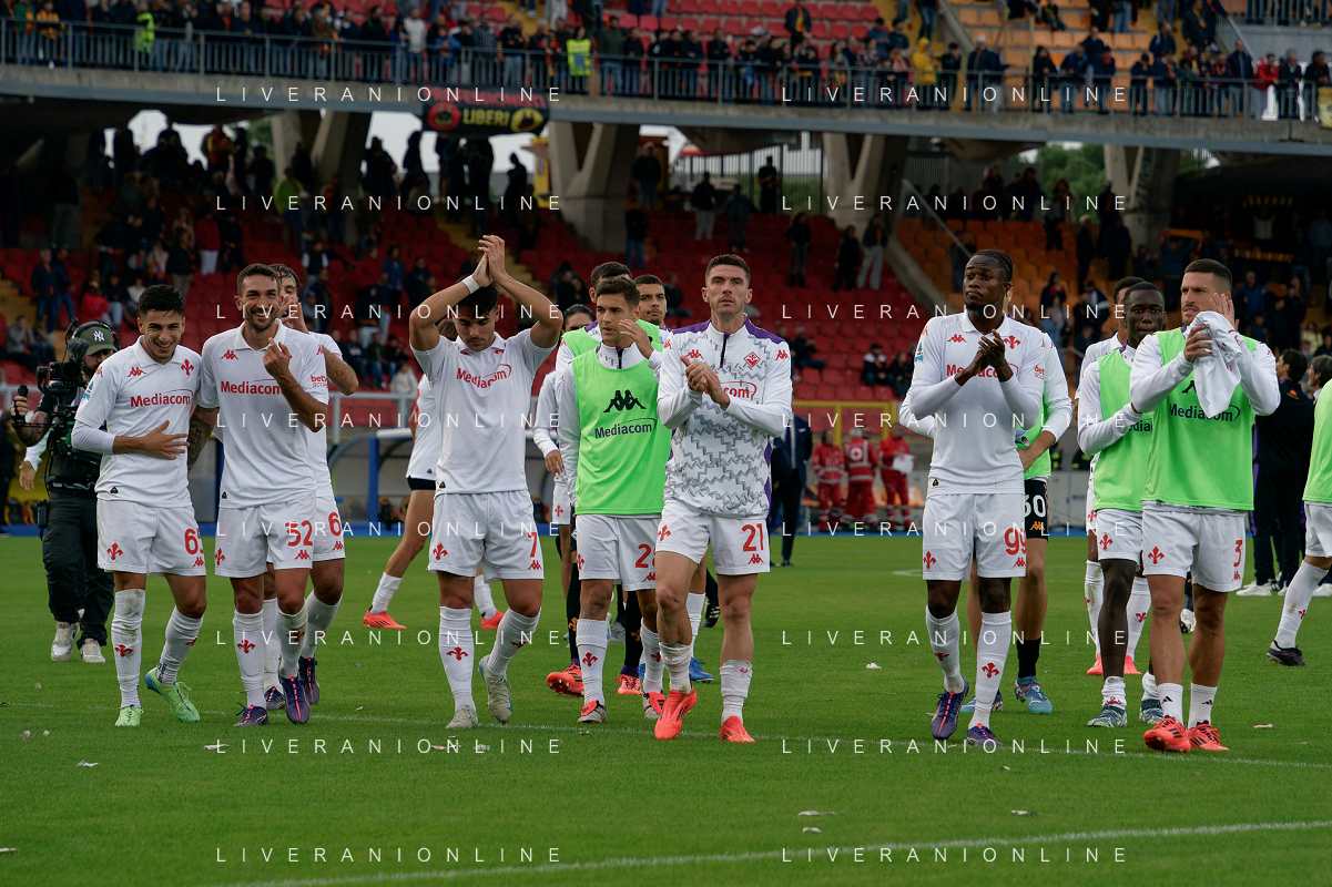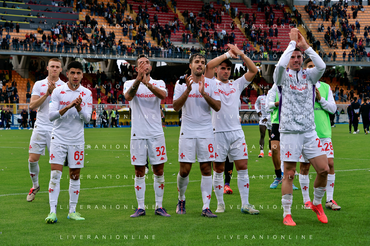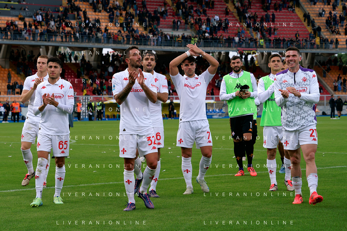 TVEM October 20, 2024 Lecce, Italy - US Lecce vs ACF Fiorentina - Italian soccer serie A 2024/25 - Via Del Mare Stadium. In the pic: the Fiorentina players applauds fans foto emmanuele mastrodonato-ag aldo liverani sas