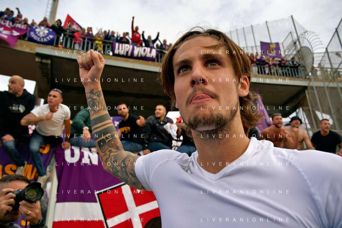 TVEM October 18, 2024 Bari, Italy - SSC Bari vs US Catanzaro - Italian soccer serie B 2024/25 - San Nicola Stadium. In the pic: Andrea Colpani of Fiorentina celebrates the victory foto emmanuele mastrodonato-ag aldo liverani sas