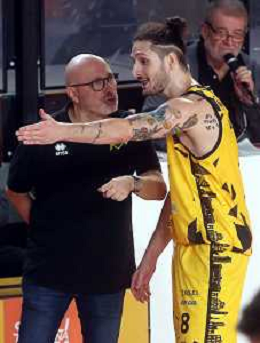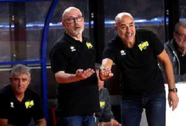 IMOLA 20 10 2024 VIRTUS IMOLA BASKET-FIDENZA SERIE B1 NELLA FOTO ALLENATORE VIRTUS IMOLA GIANLUIGI GALETTI E VICE AKI ZARIFI ©SANNA/AGENZIA ALDO LIVERANI SAS
