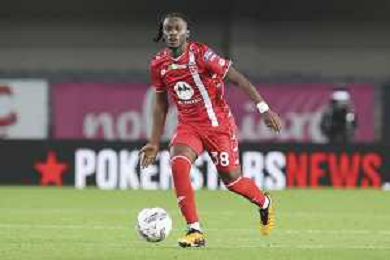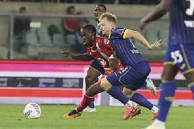 Warren Bondo of AC Monza play the ball during Hellas Verona FC vs AC Monza, 8° Serie A Enilive 2024-25 game at Marcantonio Bentegodi Stadium in Verona (VR), Italy, on October 21, 2024. (Photo by Davide Casentini) /AGENZIA ALDO LIVERANI SAS