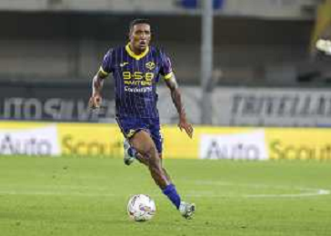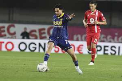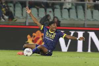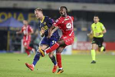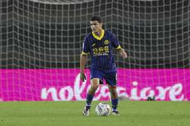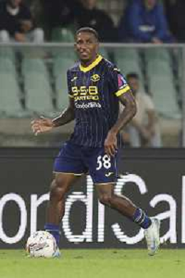 Amin Sarr of Hellas Verona FC play the ball during Hellas Verona FC vs AC Monza, 8° Serie A Enilive 2024-25 game at Marcantonio Bentegodi Stadium in Verona (VR), Italy, on October 21, 2024. (Photo by Davide Casentini) /AGENZIA ALDO LIVERANI SAS