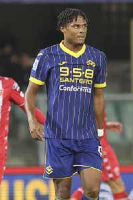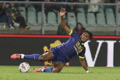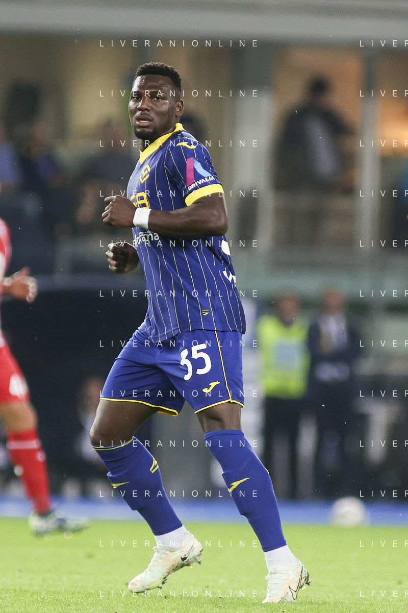 Amin Sarr of Hellas Verona FC looks during Hellas Verona FC vs AC Monza, 8° Serie A Enilive 2024-25 game at Marcantonio Bentegodi Stadium in Verona (VR), Italy, on October 21, 2024. (Photo by Davide Casentini) /AGENZIA ALDO LIVERANI SAS