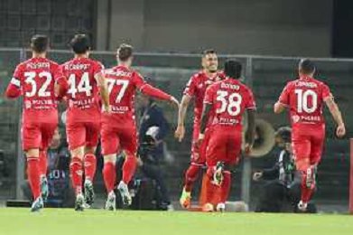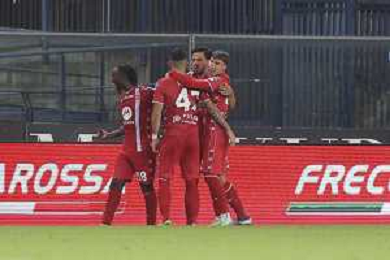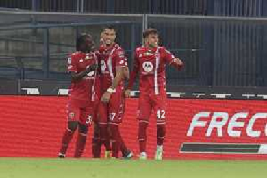 Dany Mota Carvalho of AC Monza and Monza players jubilates after scoring the goal during Hellas Verona FC vs AC Monza, 8° Serie A Enilive 2024-25 game at Marcantonio Bentegodi Stadium in Verona (VR), Italy, on October 21, 2024. (Photo by Davide Casentini) /AGENZIA ALDO LIVERANI SAS