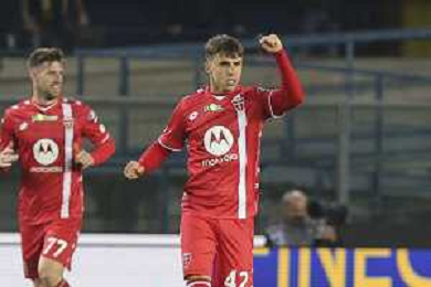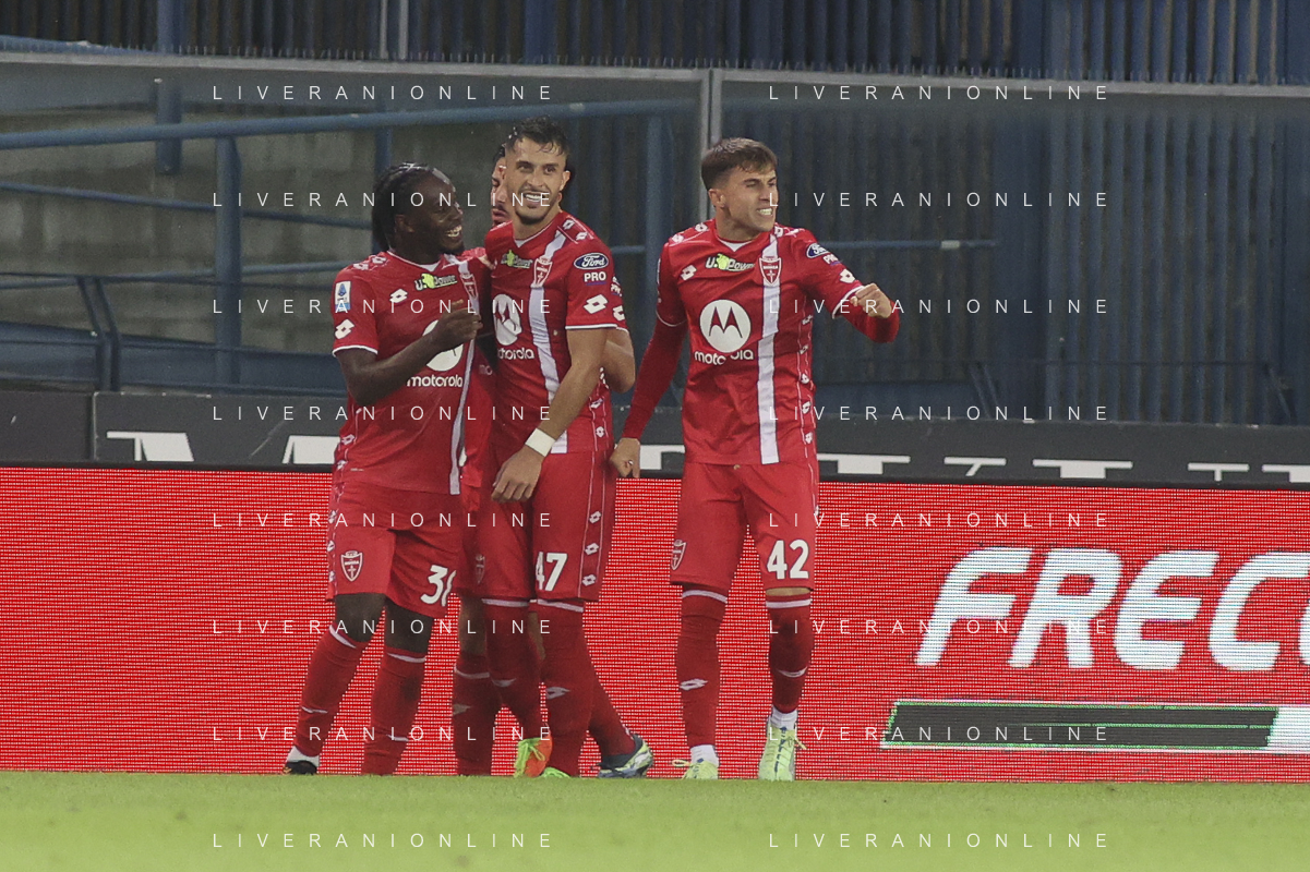 Alessandro Bianco of AC Monza celebrates after scoring during Hellas Verona FC vs AC Monza, 8° Serie A Enilive 2024-25 game at Marcantonio Bentegodi Stadium in Verona (VR), Italy, on October 21, 2024. (Photo by Davide Casentini) /AGENZIA ALDO LIVERANI SAS