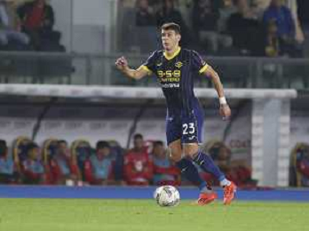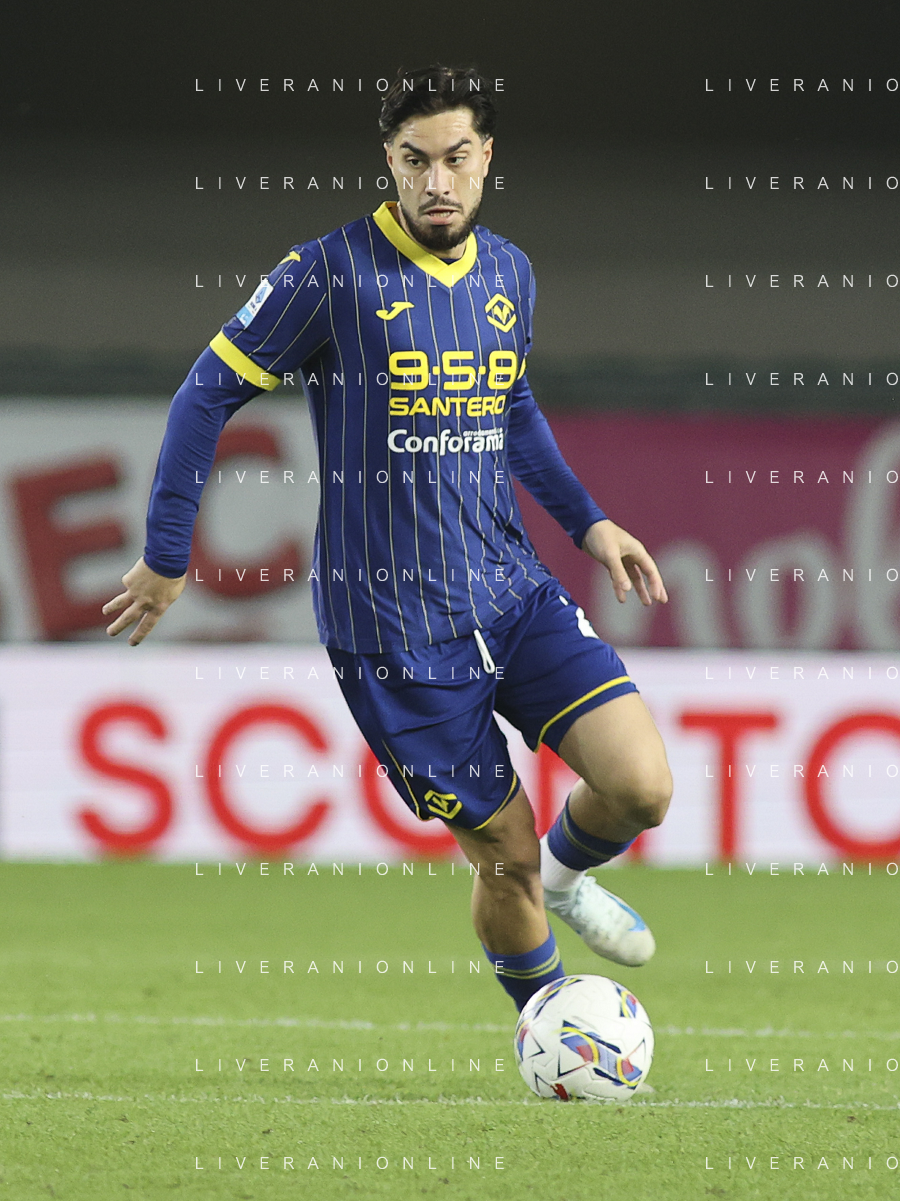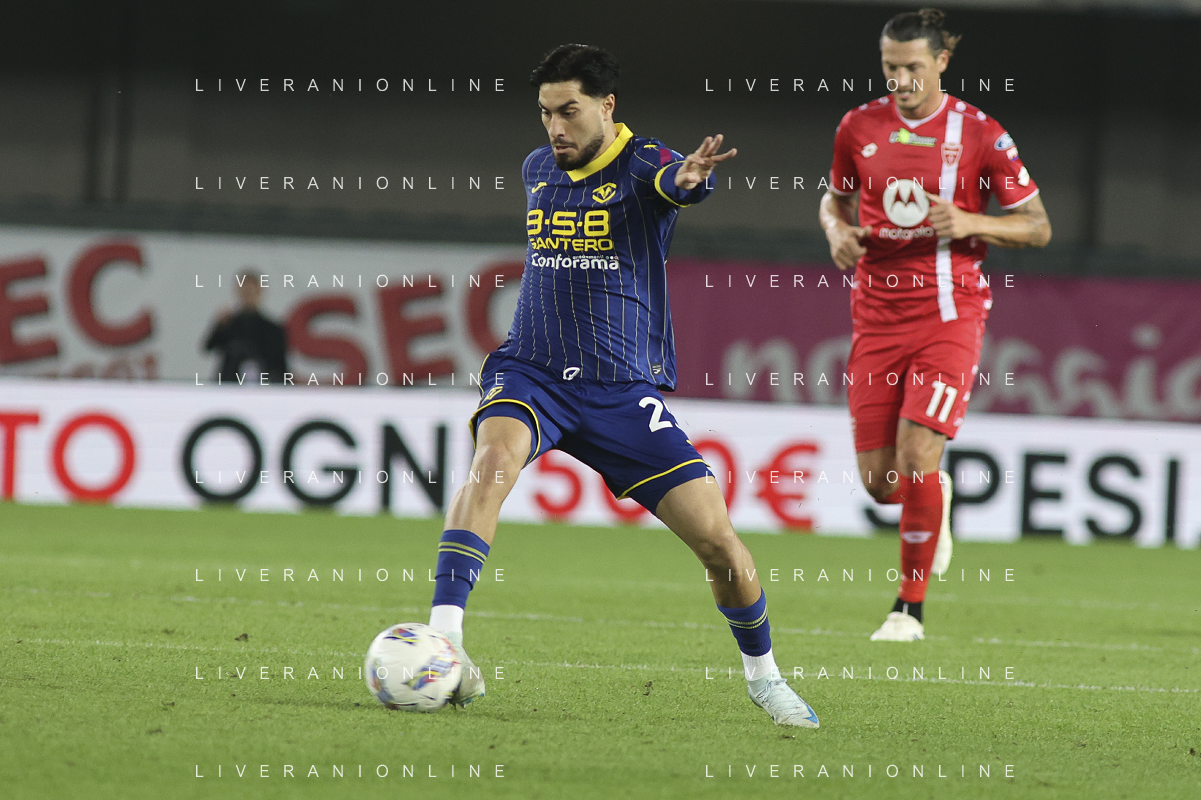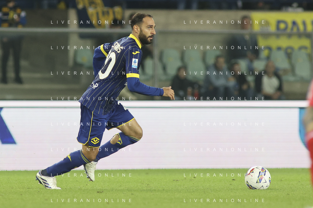 Grigoris Kastanos of Hellas Verona FC play the ball during Hellas Verona FC vs AC Monza, 8° Serie A Enilive 2024-25 game at Marcantonio Bentegodi Stadium in Verona (VR), Italy, on October 21, 2024. (Photo by Davide Casentini) /AGENZIA ALDO LIVERANI SAS