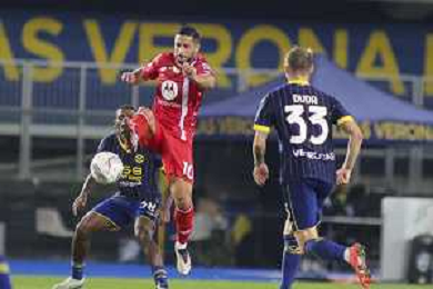 Darko Lazovic of Hellas Verona FC competes for the ball with Matteo Pessina of AC Monza during Hellas Verona FC vs AC Monza, 8° Serie A Enilive 2024-25 game at Marcantonio Bentegodi Stadium in Verona (VR), Italy, on October 21, 2024. (Photo by Davide Casentini) /AGENZIA ALDO LIVERANI SAS