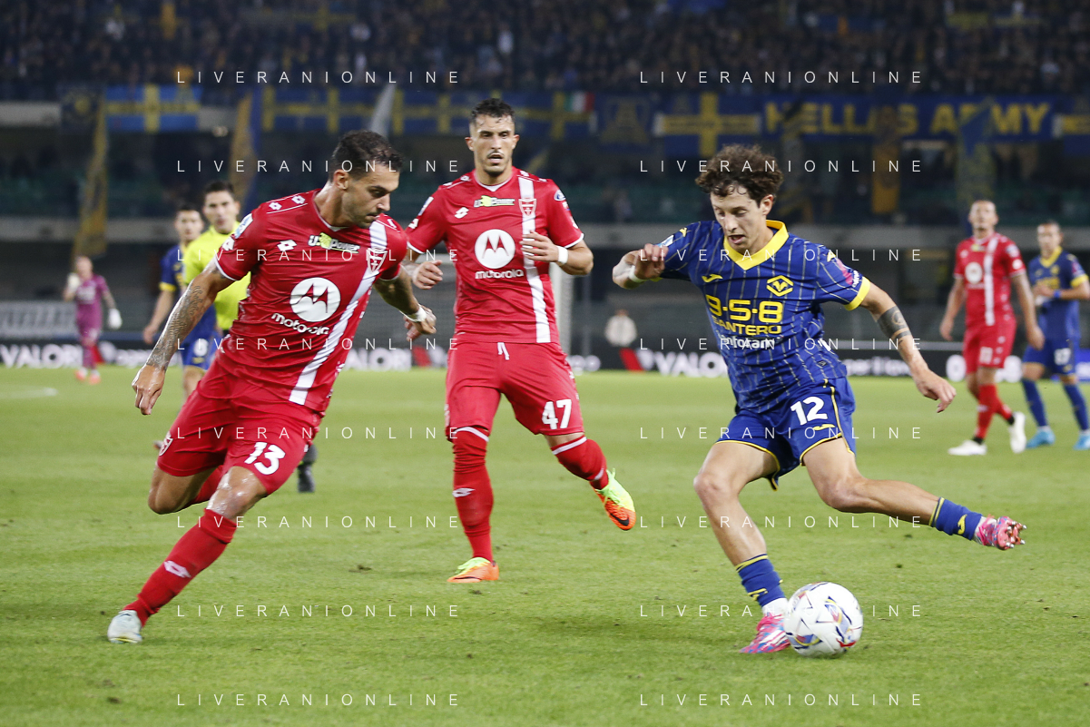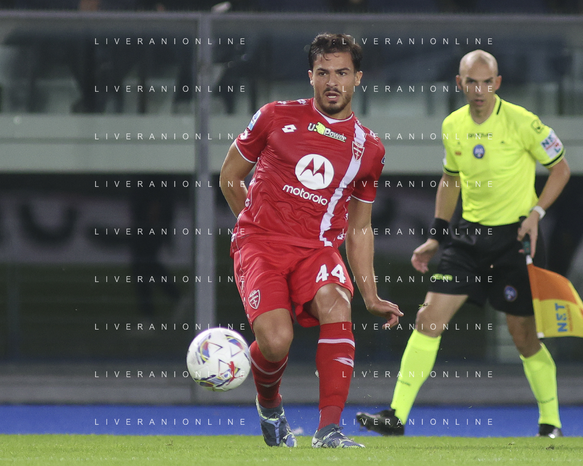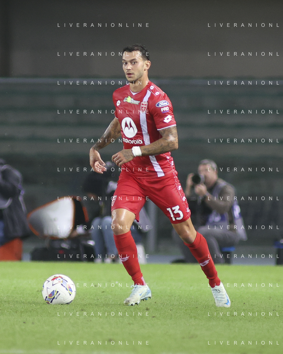 Andrea Carboni of AC Monza play the ball during Hellas Verona FC vs AC Monza, 8° Serie A Enilive 2024-25 game at Marcantonio Bentegodi Stadium in Verona (VR), Italy, on October 21, 2024. (Photo by Davide Casentini) /AGENZIA ALDO LIVERANI SAS