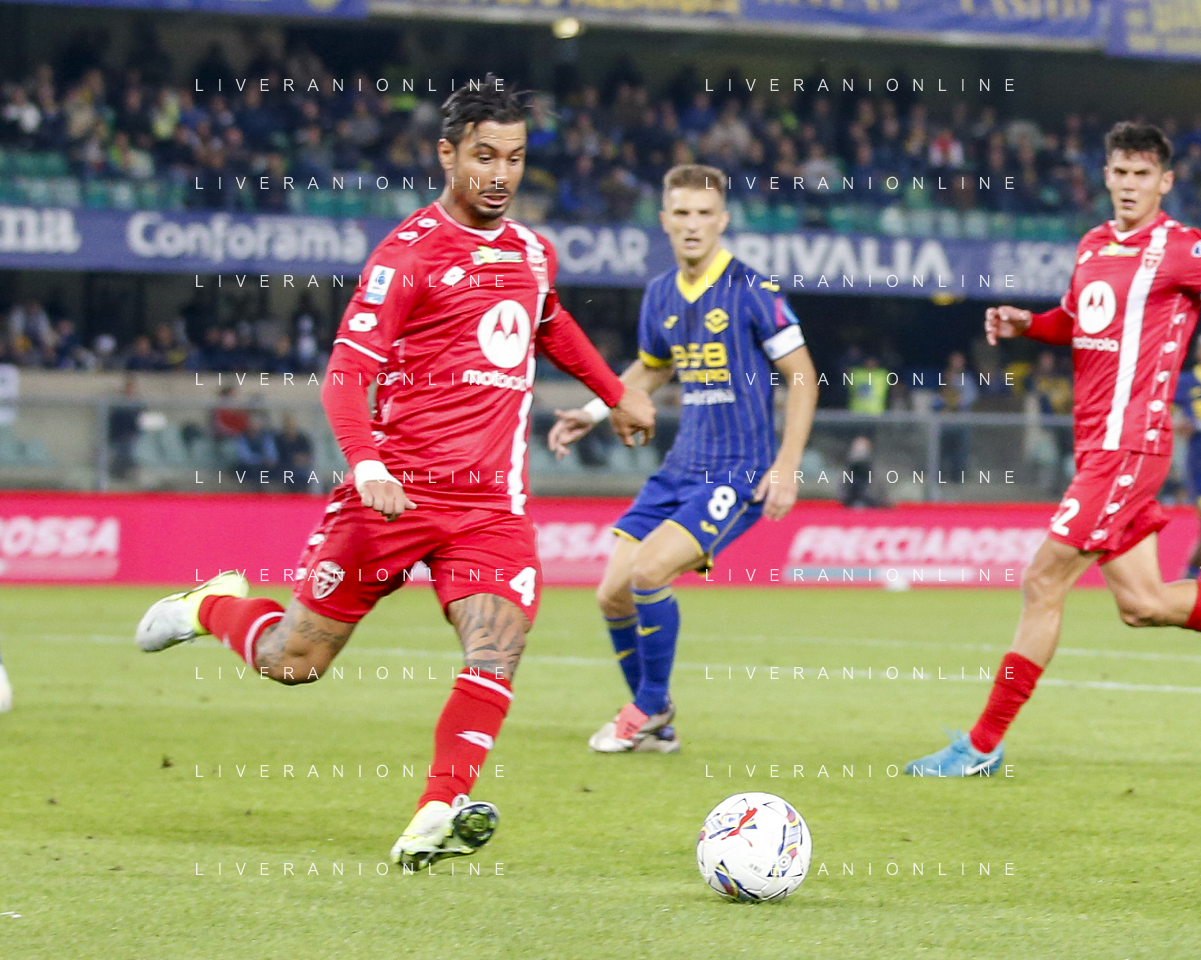 Armando Izzo of AC Monza play the ball during Hellas Verona FC vs AC Monza, 8° Serie A Enilive 2024-25 game at Marcantonio Bentegodi Stadium in Verona (VR), Italy, on October 21, 2024. (Photo by Davide Casentini) /AGENZIA ALDO LIVERANI SAS