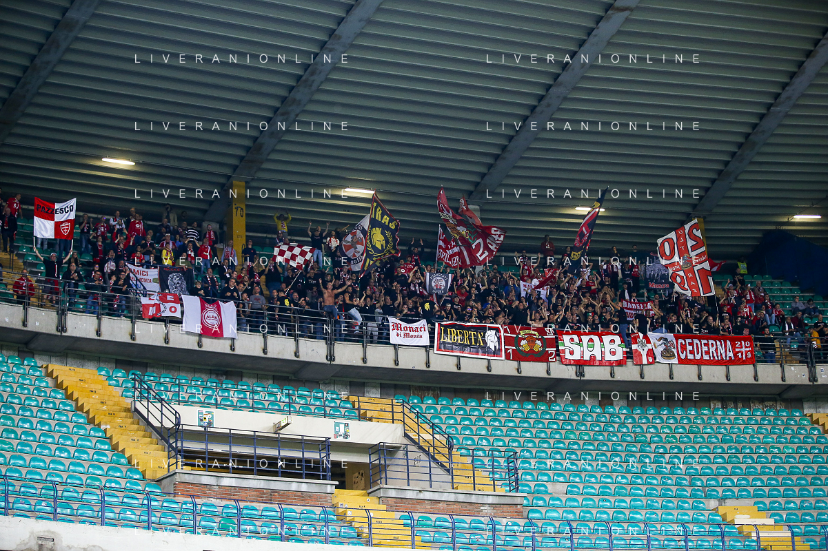 Monza fans show their support during Hellas Verona FC vs AC Monza, 8° Serie A Enilive 2024-25 game at Marcantonio Bentegodi Stadium in Verona (VR), Italy, on October 21, 2024. (Photo by Davide Casentini) /AGENZIA ALDO LIVERANI SAS