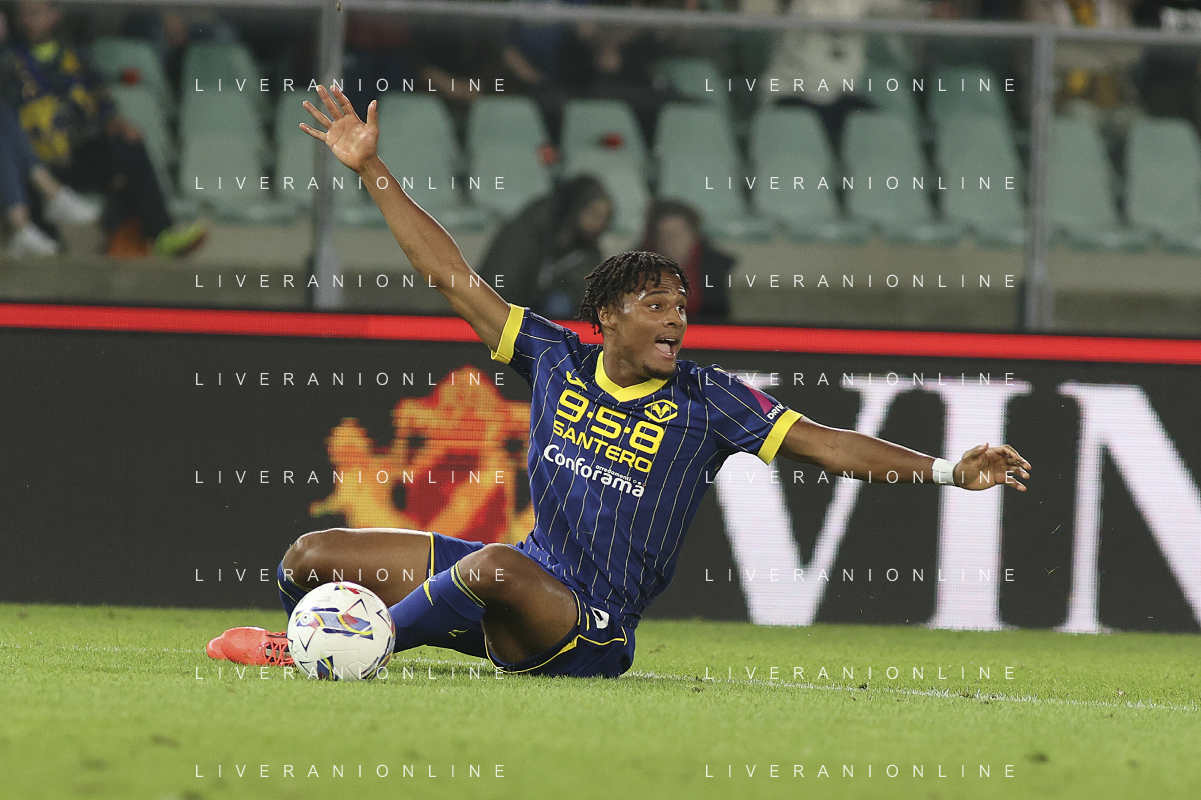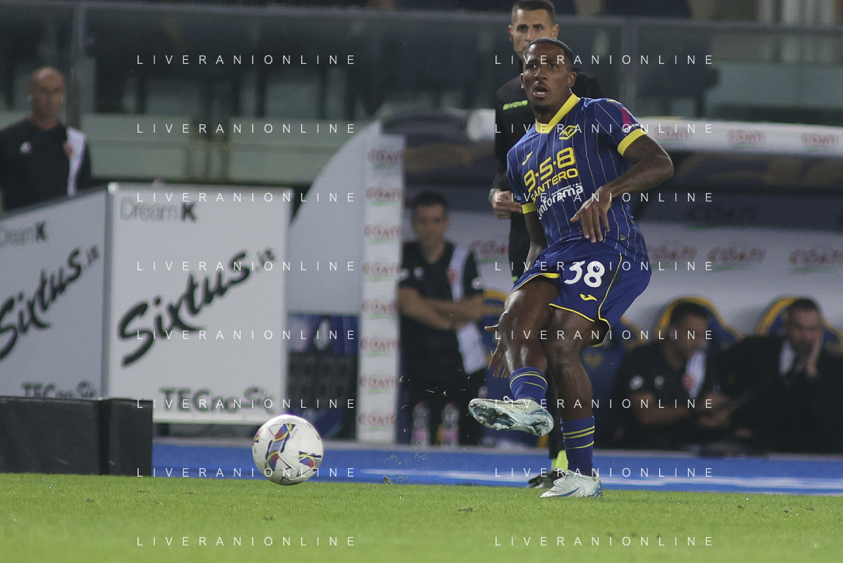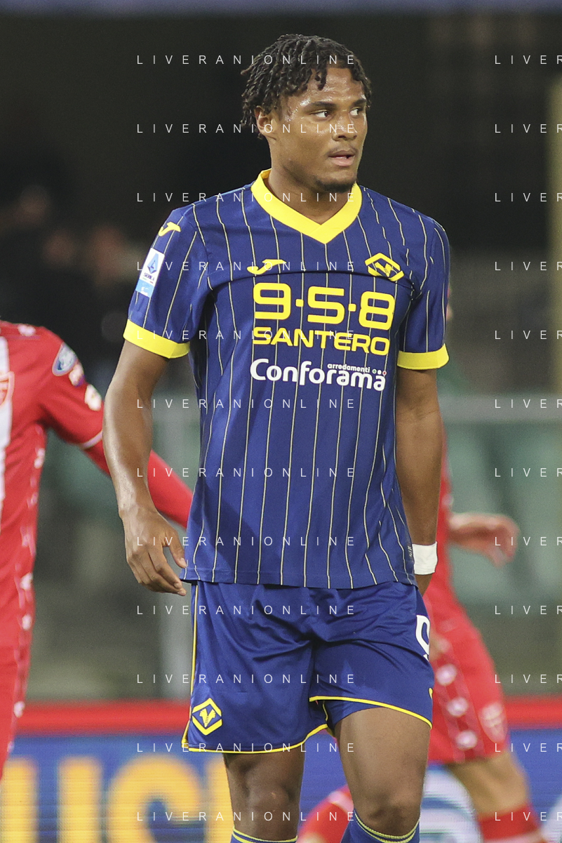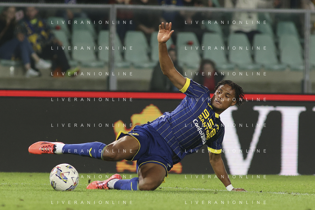 Daniel Mosquera of Hellas Verona FC during Hellas Verona FC vs AC Monza, 8° Serie A Enilive 2024-25 game at Marcantonio Bentegodi Stadium in Verona (VR), Italy, on October 21, 2024. (Photo by Davide Casentini) /AGENZIA ALDO LIVERANI SAS