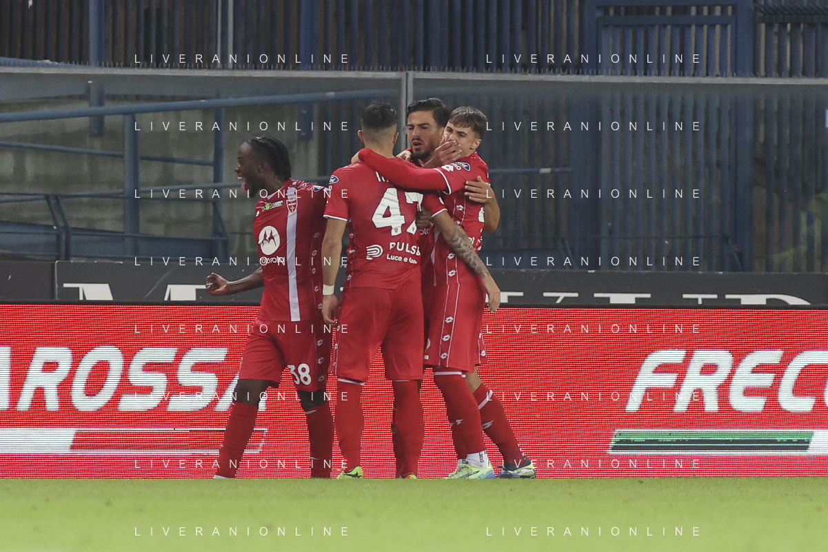 Alessandro Bianco of AC Monza celebrates the Dany Mota Carvalho of AC Monza goal during Hellas Verona FC vs AC Monza, 8° Serie A Enilive 2024-25 game at Marcantonio Bentegodi Stadium in Verona (VR), Italy, on October 21, 2024. (Photo by Davide Casentini) /AGENZIA ALDO LIVERANI SAS