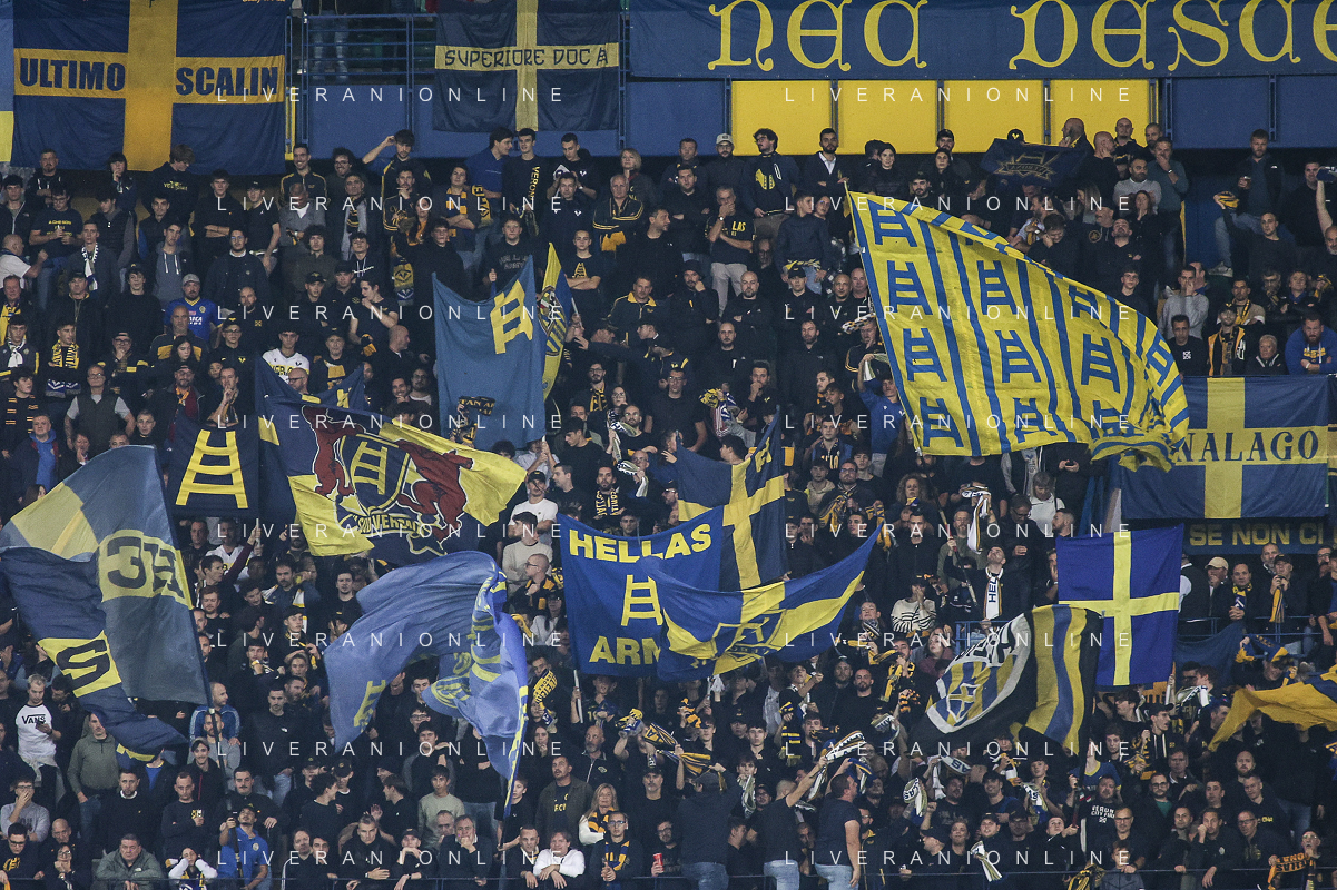 Hellas Verona fans show their support during Hellas Verona FC vs AC Monza, 8° Serie A Enilive 2024-25 game at Marcantonio Bentegodi Stadium in Verona (VR), Italy, on October 21, 2024. (Photo by Davide Casentini) /AGENZIA ALDO LIVERANI SAS