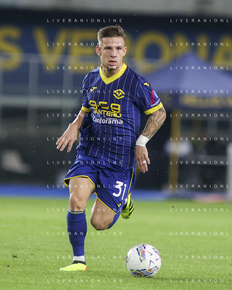 Tomas Suslov of Hellas Verona FC during Hellas Verona FC vs AC Monza, 8° Serie A Enilive 2024-25 game at Marcantonio Bentegodi Stadium in Verona (VR), Italy, on October 21, 2024. (Photo by Davide Casentini) /AGENZIA ALDO LIVERANI SAS