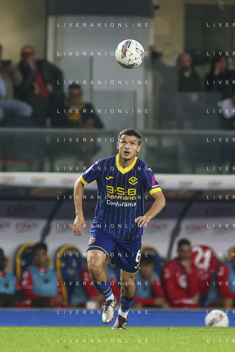 Reda Belahyane of Hellas Verona FC play the ball during Hellas Verona FC vs AC Monza, 8° Serie A Enilive 2024-25 game at Marcantonio Bentegodi Stadium in Verona (VR), Italy, on October 21, 2024. (Photo by Davide Casentini) /AGENZIA ALDO LIVERANI SAS