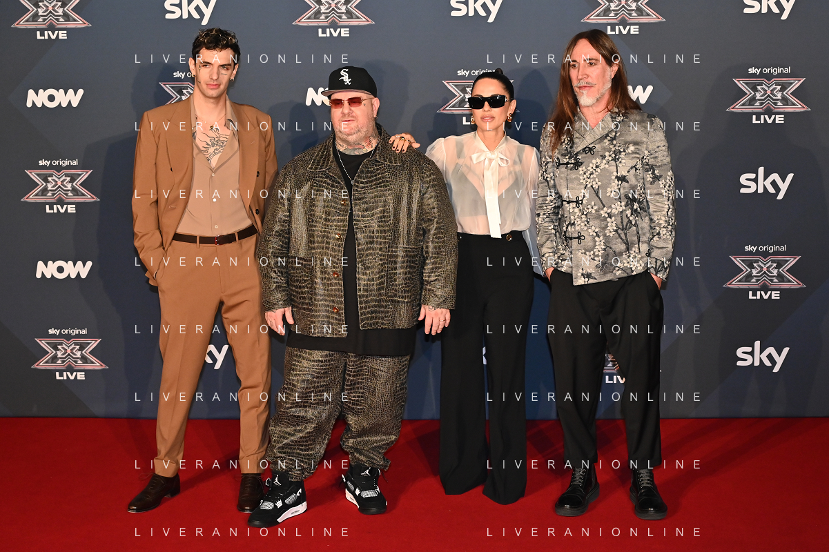 TVRG Photocall X-Factor nella foto i giudici da SX Achille Lauro, Jake La Furia, Paola Iezzi e Manuel Agnelli Assago (MI) 22-10-2024 Photocall con il cast e i concorrenti di X-Factor foto Roberto Garavaglia/Agenzia Aldo Liverani sas