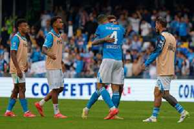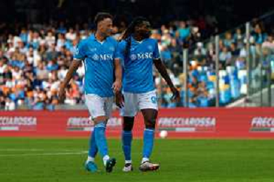 TVEM October 26, 2024 Napoli, Italy - SSC Napoli vs US Lecce - Italian soccer serie A 2024/25 - Diego Armando Maradona Stadium. In the pic: Amir Rrahmani of SSC Napoli and André Frank Anguissa of SSC Napoli foto emmanuele mastrdonato-ag aldo liverani sas
