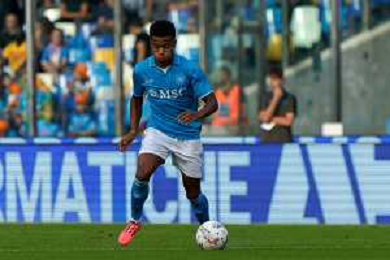 TVEM October 26, 2024 Napoli, Italy - SSC Napoli vs US Lecce - Italian soccer serie A 2024/25 - Diego Armando Maradona Stadium. In the pic: Cyril Ngonge of SSC Napoli foto emmanuele mastrdonato-ag aldo liverani sas