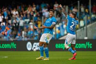 TVEM October 26, 2024 Napoli, Italy - SSC Napoli vs US Lecce - Italian soccer serie A 2024/25 - Diego Armando Maradona Stadium. In the pic: Giovanni Di Lorenzo of SSC Napoli celebrates after scoring a goal with Matteo Politano of SSC Napoli foto emmanuele mastrdonato-ag aldo liverani sas