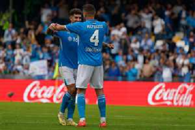 TVEM October 26, 2024 Napoli, Italy - SSC Napoli vs US Lecce - Italian soccer serie A 2024/25 - Diego Armando Maradona Stadium. In the pic: Giovanni Di Lorenzo of SSC Napoli celebrates the victory with Alessandro Buongiorno of SSC Napoli foto emmanuele mastrdonato-ag aldo liverani sas