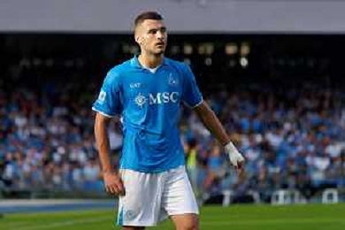 TVEM October 26, 2024 Napoli, Italy - SSC Napoli vs US Lecce - Italian soccer serie A 2024/25 - Diego Armando Maradona Stadium. In the pic: Amir Rrahmani of SSC Napoli foto emmanuele mastrdonato-ag aldo liverani sas