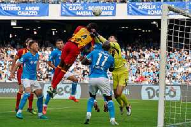 TVEM October 26, 2024 Napoli, Italy - SSC Napoli vs US Lecce - Italian soccer serie A 2024/25 - Diego Armando Maradona Stadium. In the pic: Kialonda Gaspar of US Lecce in action against Alex Meret of SSC Napoli ©Emmanuele Mastrodonato /AGENZIA ALDO LIVERANI SAS