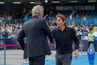 TVEM October 26, 2024 Napoli, Italy - SSC Napoli vs US Lecce - Italian soccer serie A 2024/25 - Diego Armando Maradona Stadium. In the pic: Antonio Conte e Luca Gotti ©Emmanuele Mastrodonato/AGENZIA ALDO LIVERANI SAS