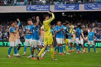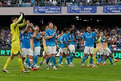 TVEM October 26, 2024 Napoli, Italy - SSC Napoli vs US Lecce - Italian soccer serie A 2024/25 - Diego Armando Maradona Stadium. In the pic: esultanza napoli a fine gara ©Emmanuele Mastrodonato/AGENZIA ALDO LIVERANI SAS