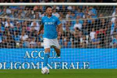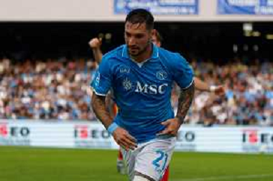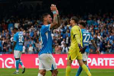 TVEM October 26, 2024 Napoli, Italy - SSC Napoli vs US Lecce - Italian soccer serie A 2024/25 - Diego Armando Maradona Stadium. In the pic: Matteo Politano of SSC Napoli applauds fans foto emmanuele mastrdonato-ag aldo liverani sas
