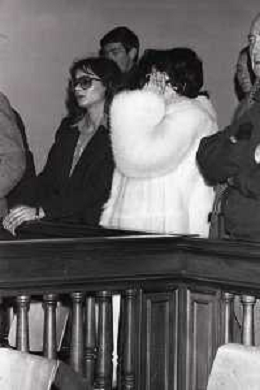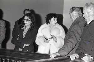 NEG-RETROSPETTIVA RENATO VALLANZASCA CRIMINALE ITALIANO NELLA FOTO GIULIANA BRUSA CON LA MOGLIE DI FRANCIS TURATELLO MOGLIE DI RENATO VALLANZASCA AL PROCESSO DEL MARITO A COMO NELL'ANNO 1979 AG ALDO LIVERANI SAS