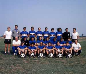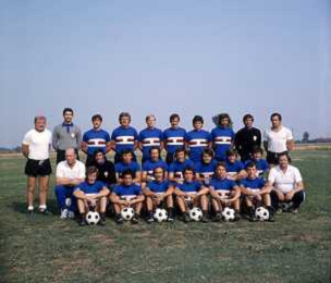 FORMAZIONE SQUADRA UNIONE CALCIO SAMPDORIA CAMPIONATO SERIE A 1975-1976 NELLA FOTO CON L'ALLENATORE EUGENIO BERSELLINI AG ALDO LIVERANI SAS